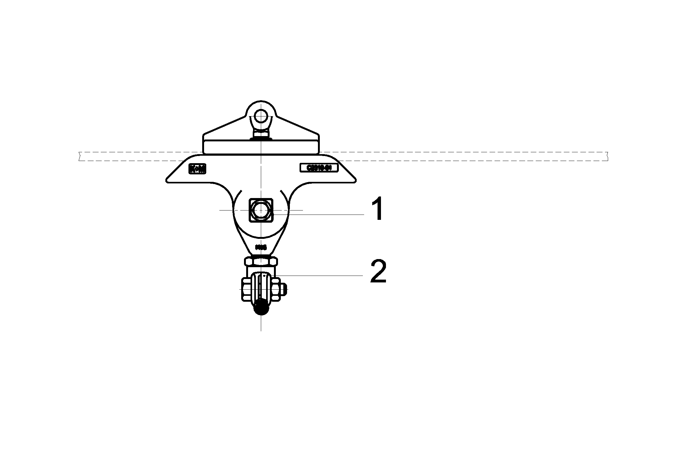 Fahrdrahtaufhängung STB mit Isolierkörper KUSYS1, in Geraden an Querspanner Kunststoff 0-4° mit Fahrdrahtklemme M16