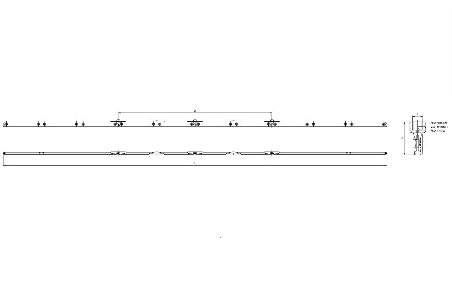 Kurvenschiene Typ 04, für Fahrdrahtablenkungswinkel 14.5°–30°, mit Gewinde M16, für Rillenfahrdraht 100–120 mm²