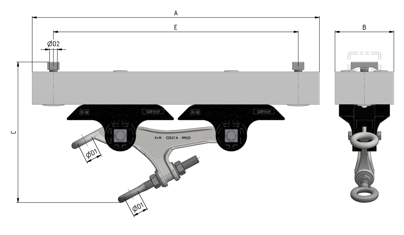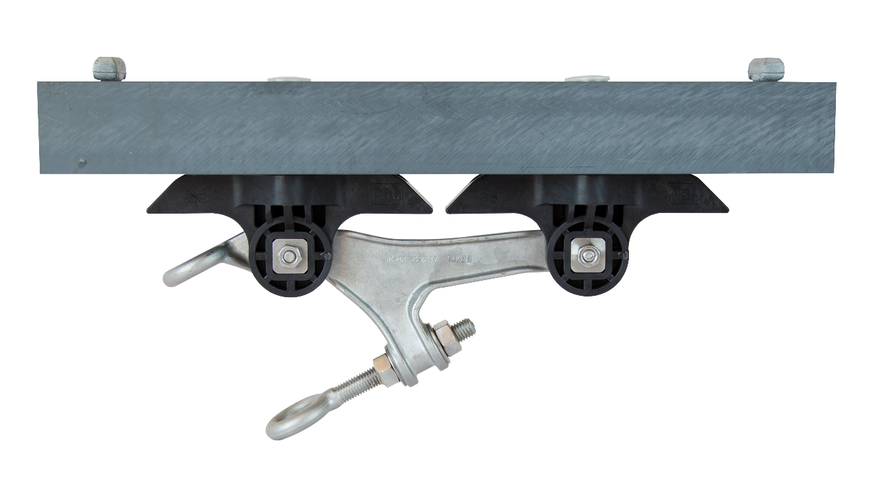 Isolierkörper an Ankerschiene Typ 3B mit Aufhängeschrauben KUSYS Typ 2 mit Doppel-Öse