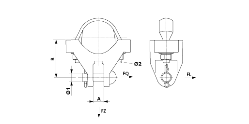 Befestigungsanschluss komplett, mit Bügelschraube, an Rohr Ø = 70 mm, stark