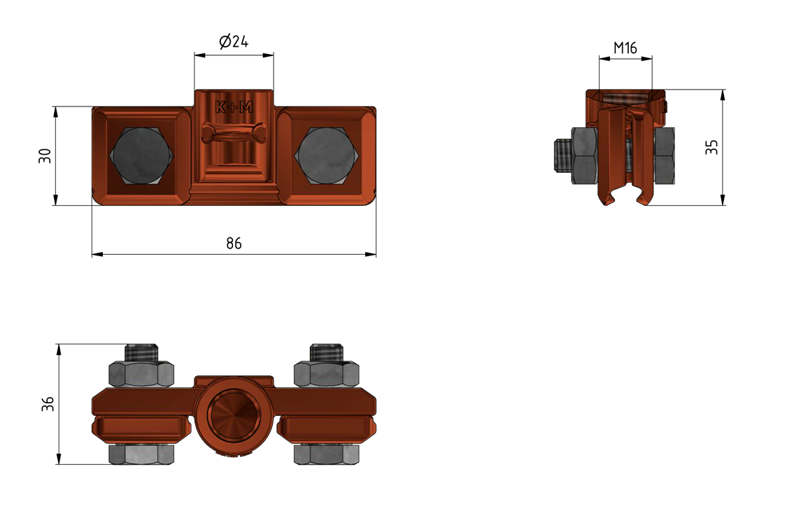 Fahrdrahtklemme komplett, mit Gewinde M16