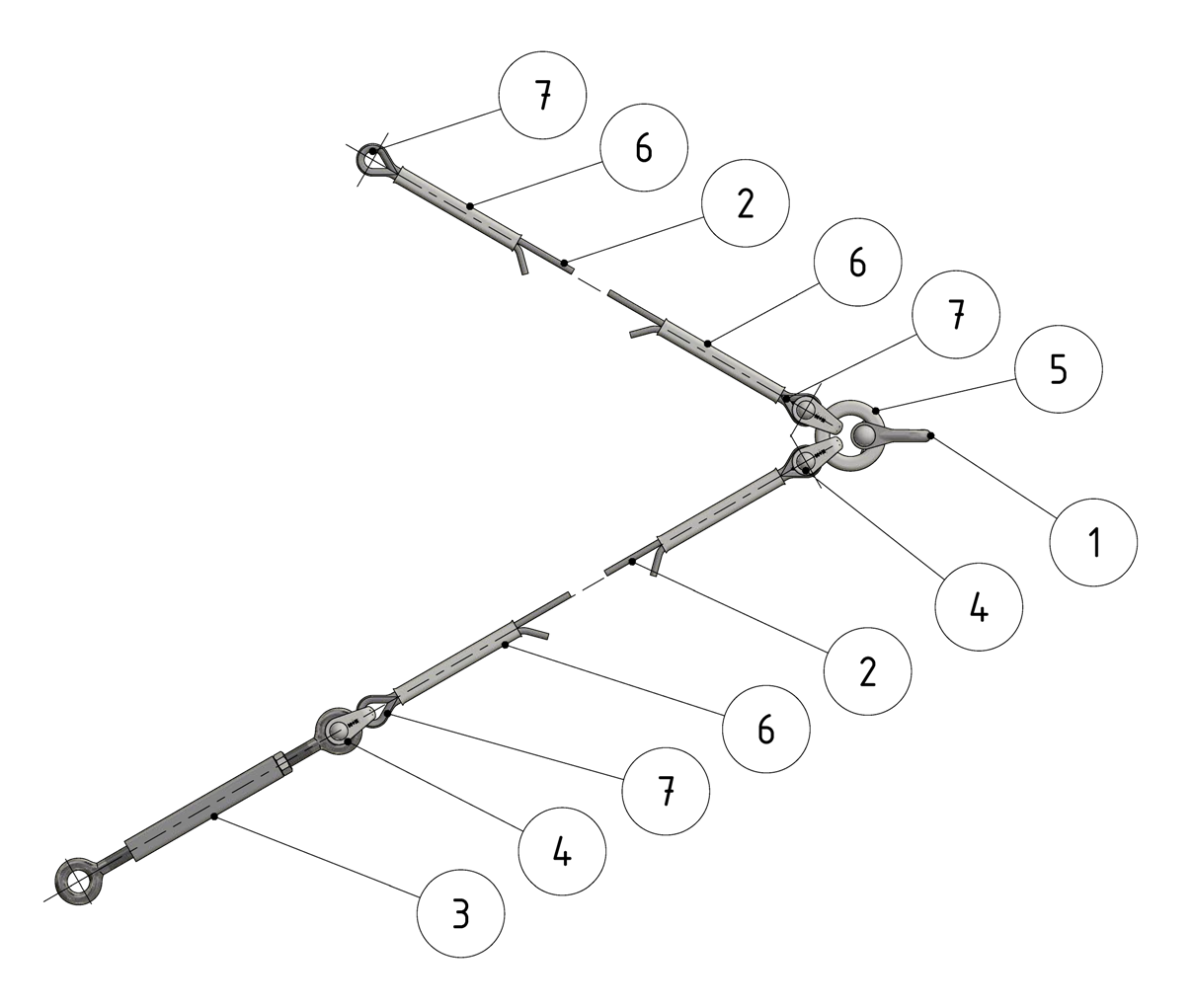 Bridle, steel cable 35 mm² HDG, with bull ring, without insulation