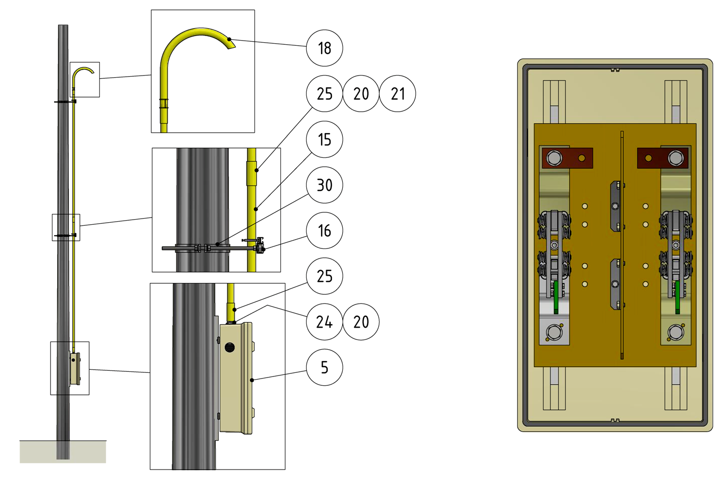 - Attachment to round pole- Clamp for round pole, part no. C1139-... (to be ordered separately)