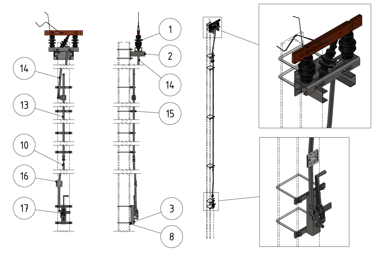 - U-bolts for poles HEB 180-260 to be ordered separately (please look under brackets for disconnect switches, switch gears and guides for operating rods)