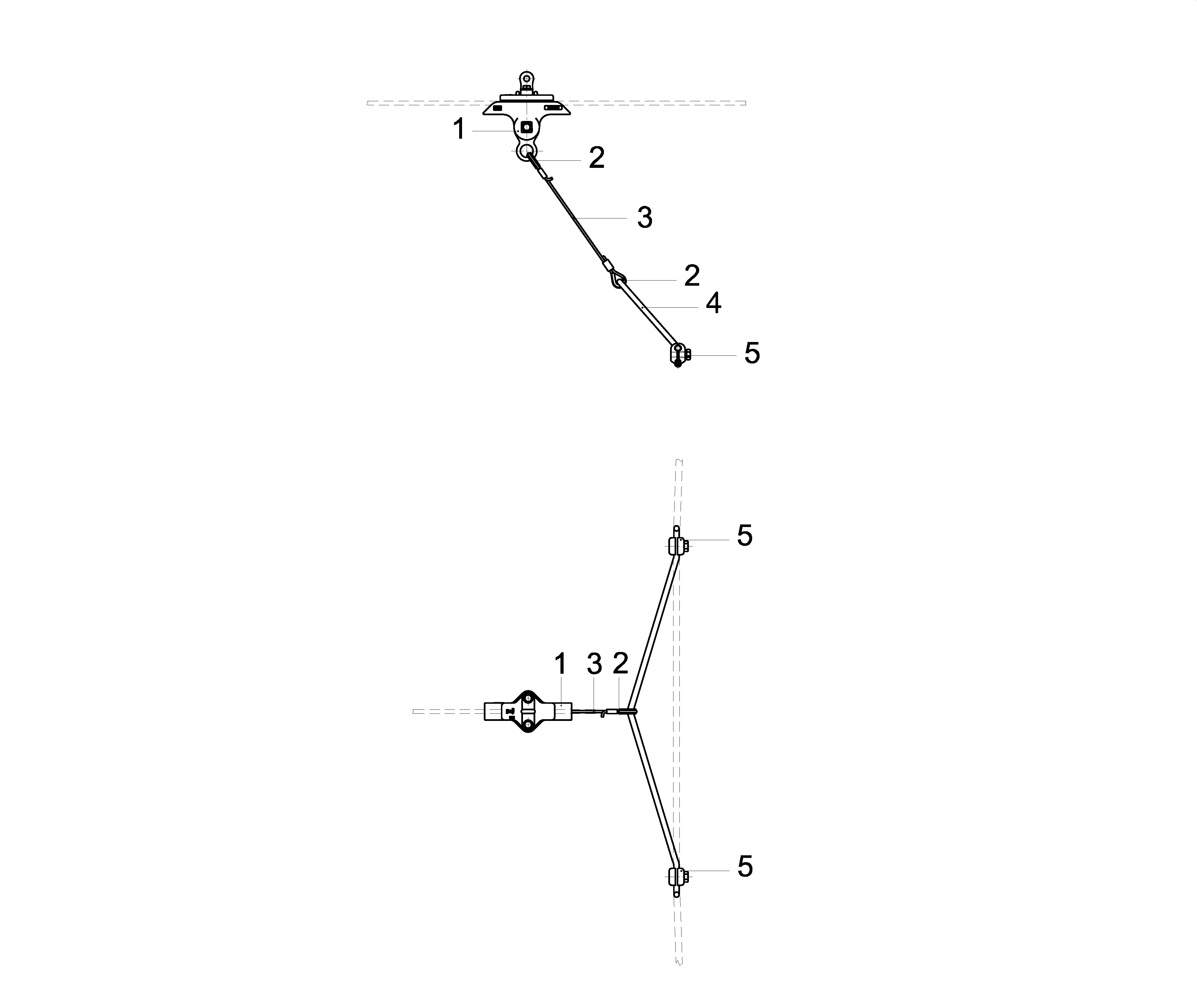 Contact wire suspension TW with line insulator KUSYS1, in tangent to cross-span steel/steel-copper cable 0-4° pendulum with suspension eye