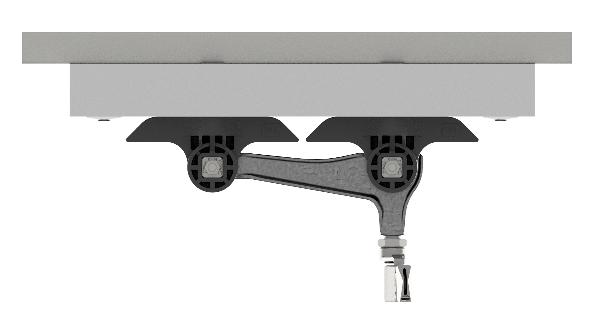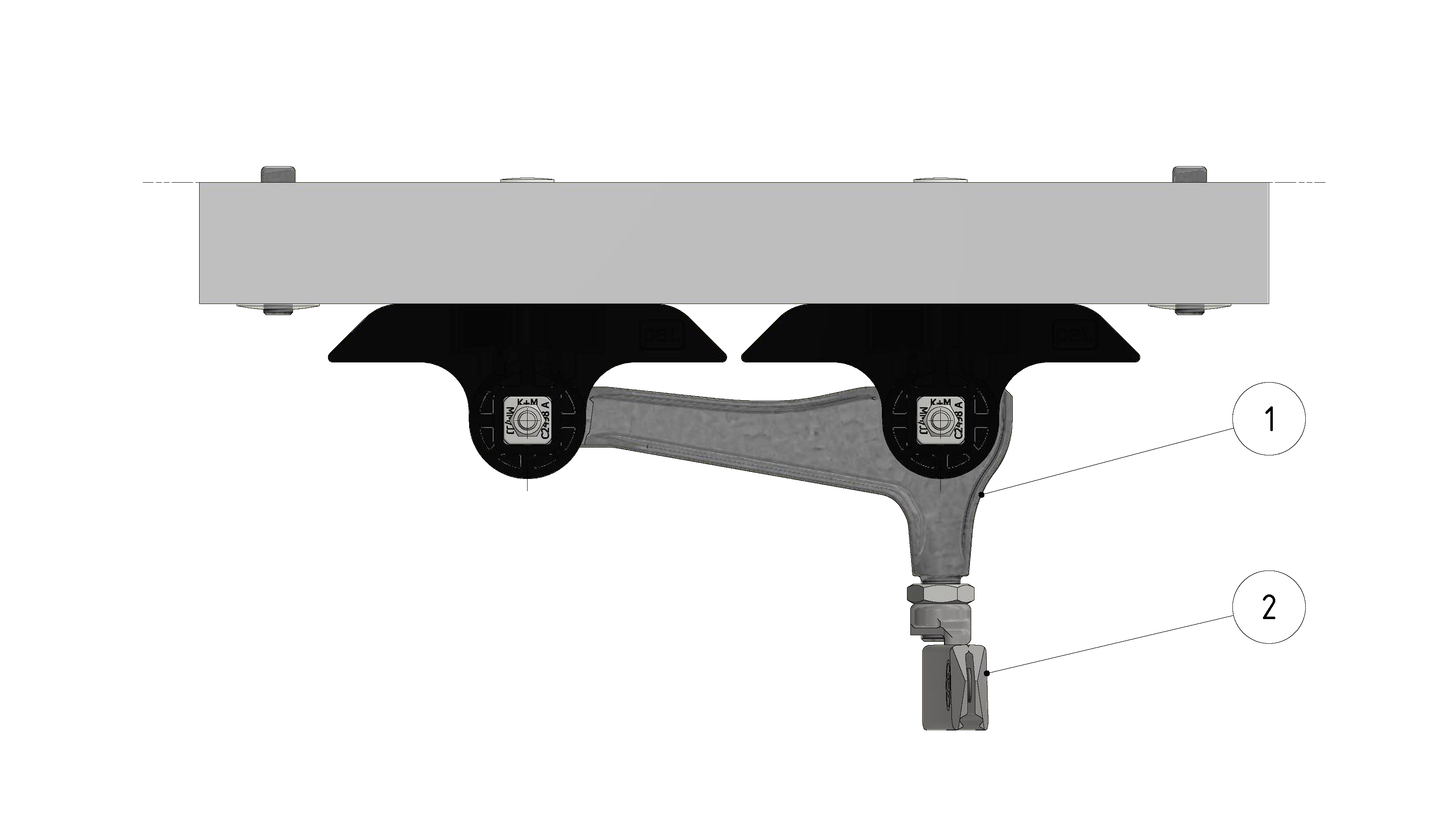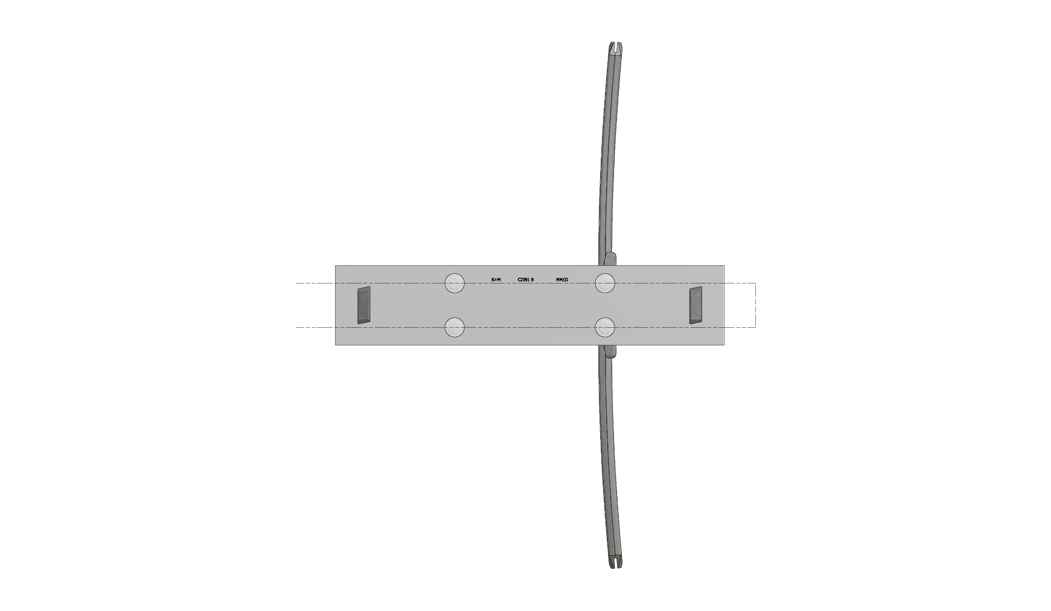 Contact wire suspension ETB with line insulator type 2, in curves to Unistrut channel type 3 B 3-5°, with curve rail type 0, M16