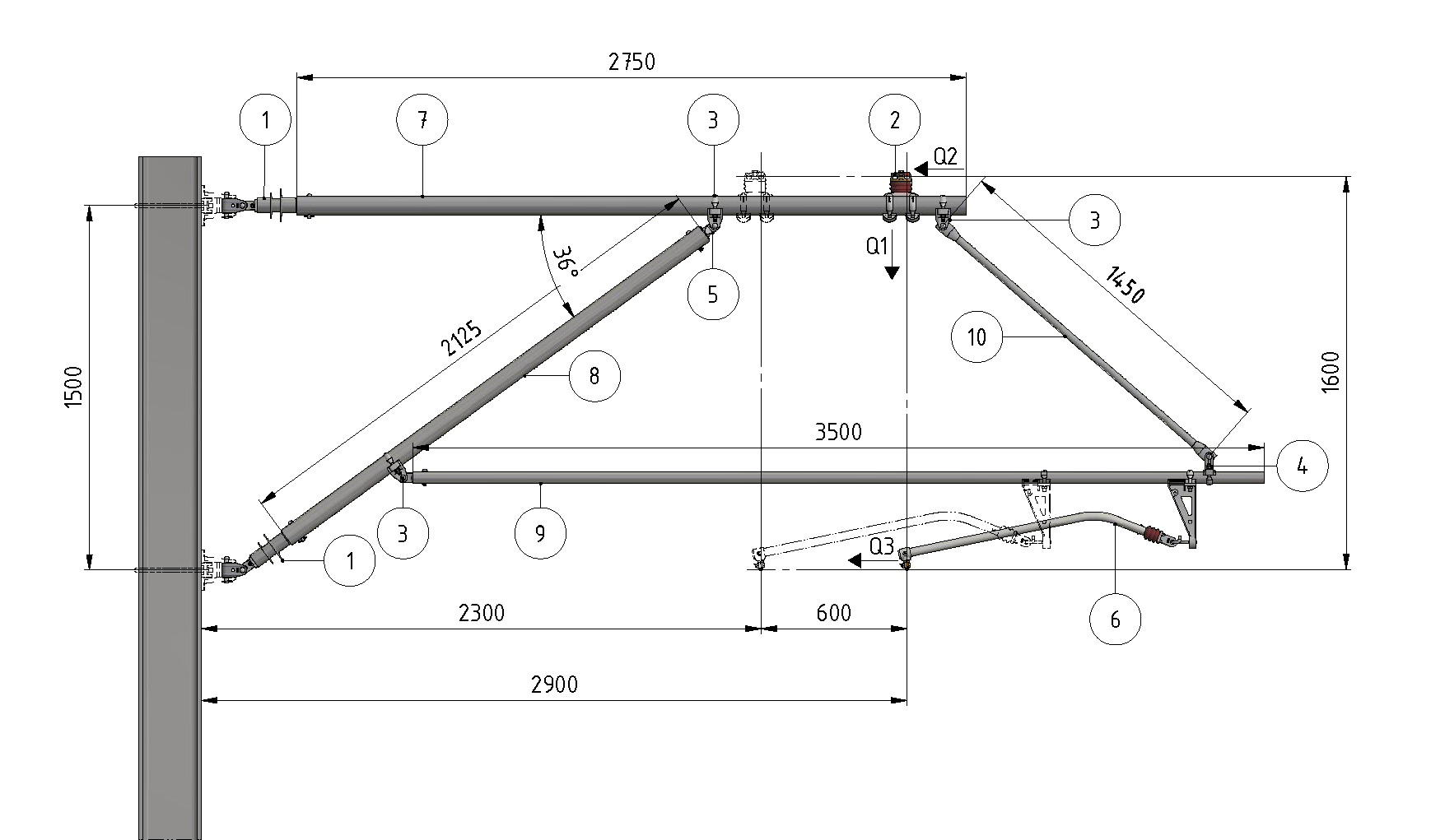 ARCAS Ausleger, vollnachgespannt (VN), DRUCK, Lf= 2.30-2.90m
