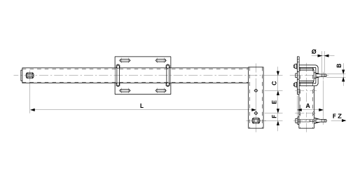 - Attachment to poles HEB 180-260- U-bolts Ø= 16 mm, part no. E0888-.. (2 pcs.)(to be ordered separately)