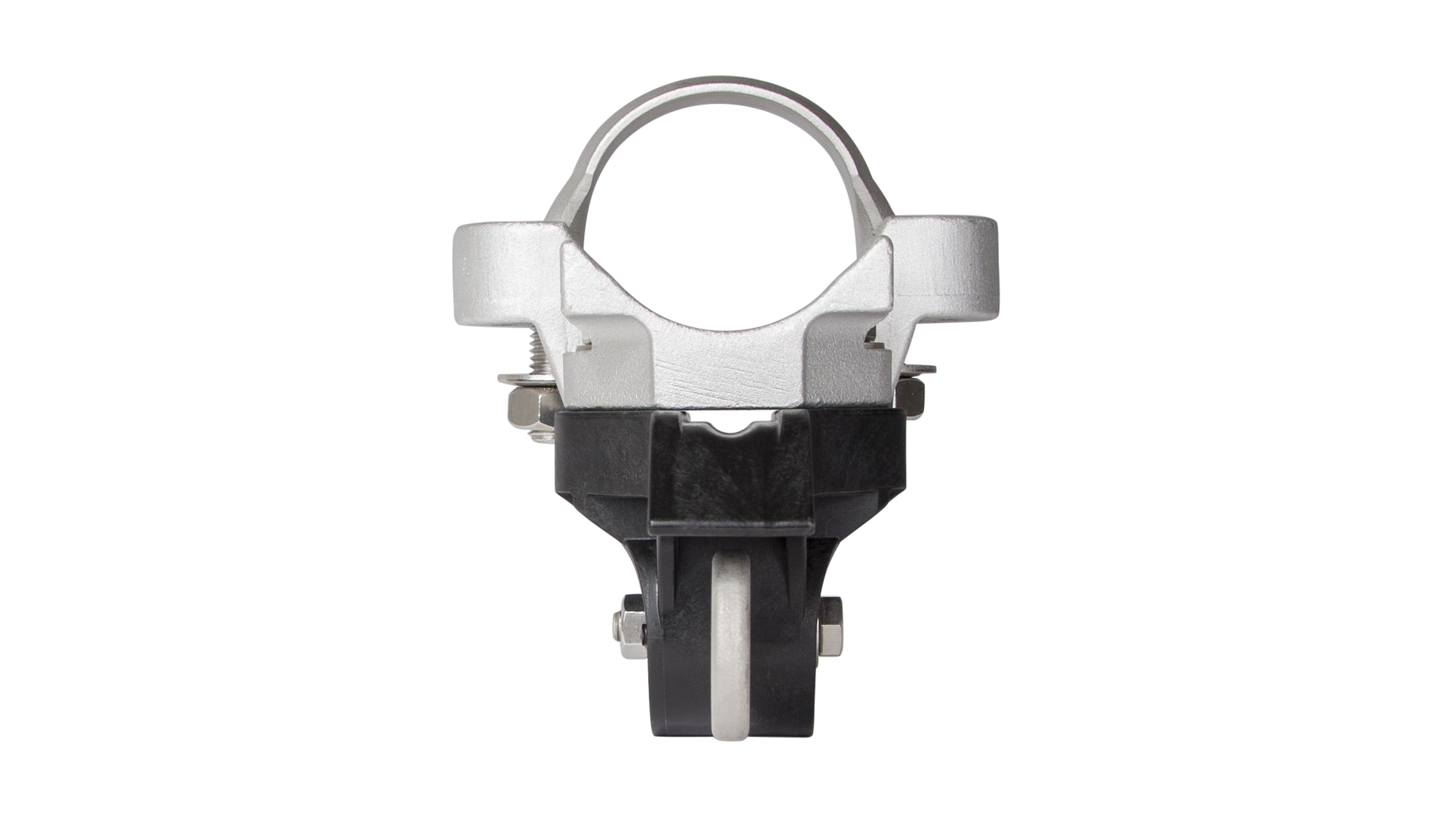 The application in overhead contact lines requires a wide insulation of the support structure to the support bases.Optional: Exchanging the u-bolt allows mounting to pipes Ø45 – 80mm mm.