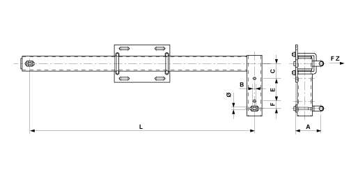 Bracket inclined complete, for suspender, for tension section, with clevis, L = 900 mm