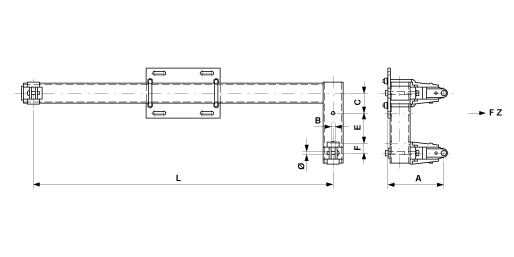 Bracket inclined complete, for suspender, for tension section, with hinge and clevis, L = 900 mm