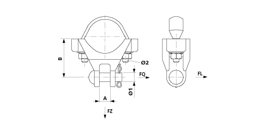 Breaking load F along: of clevis fork 14.0 kNBreaking load F across: of clevis fork 4.5 kN