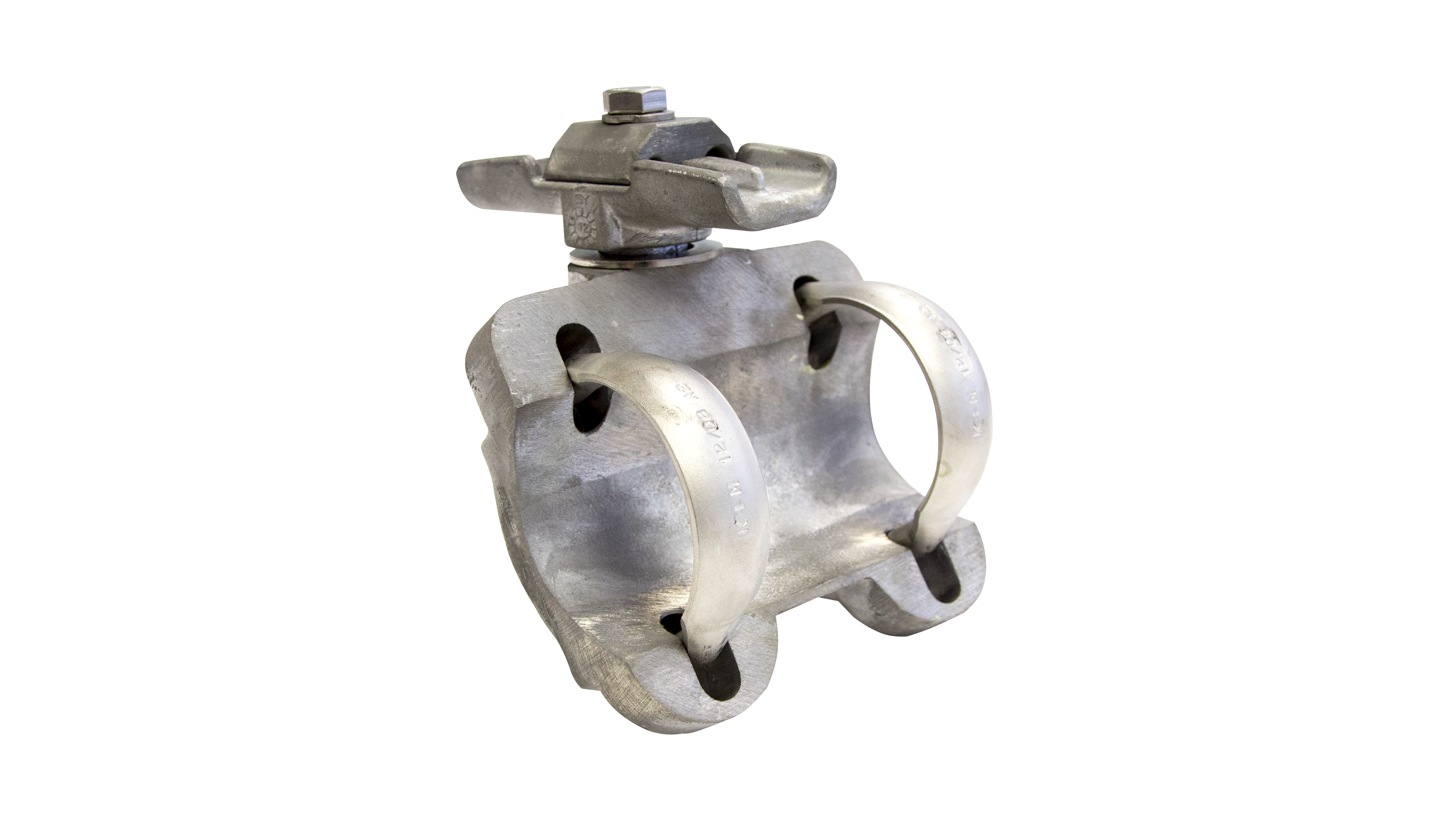 Messenger cable suspension non insulated, rotatable, reinforced, to pipe D = 90 mm, cable Ø max. 13 mm