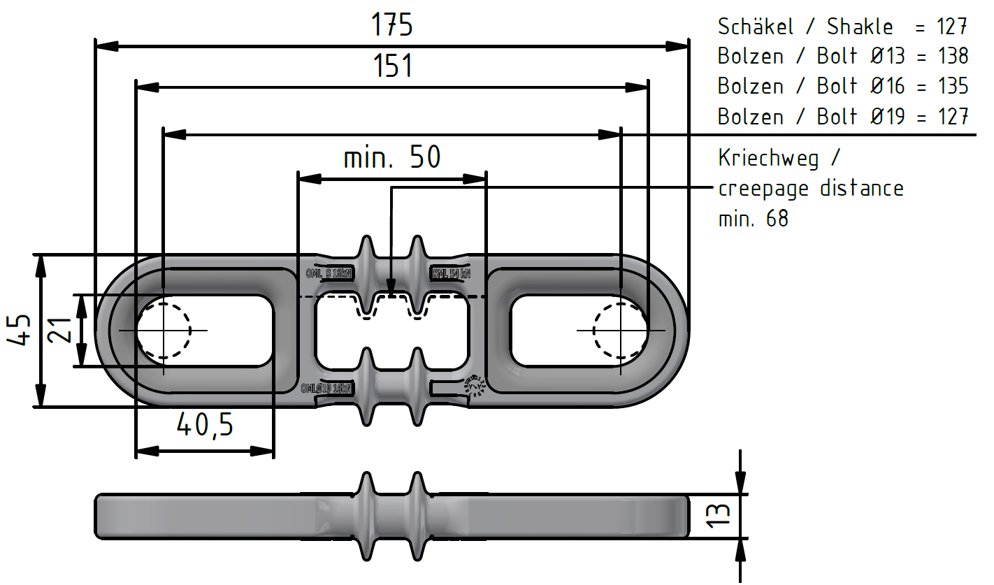 | Permissable operating load (OML) in combination with bolt Ø13 | 14 kN |