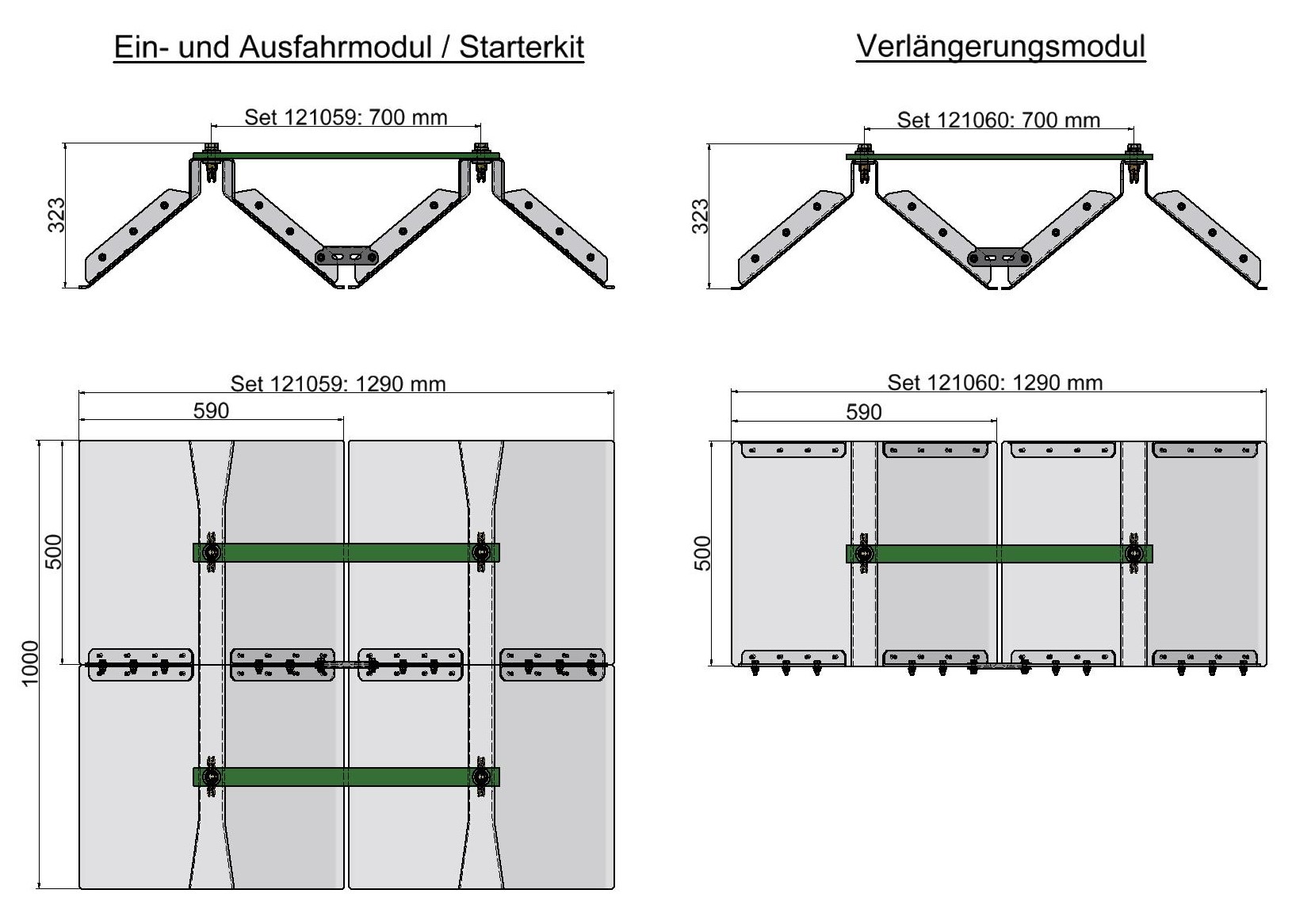 KUROOF basic package / retraction and extension module, modular troughing 700 mm