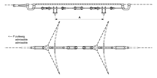 Retenue de courbe TB déplaçable avec boucle isolante, pour tube en cuivre, sur transversal câble en acier/acier-cuivre 35 mm²