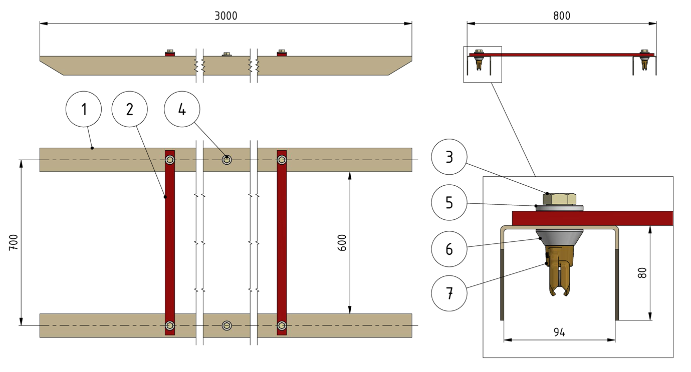 Caniveaux de protection TB, L = 3000 mm pour 2 fils de contact rainurés avec 2 lattes d'écartement