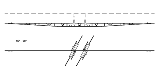 Croisement TB–TRW, sans interruption du courant, 45°–60°, avec connexion électrique, barre profilée/tube, ligne de contact TRW non régularisée