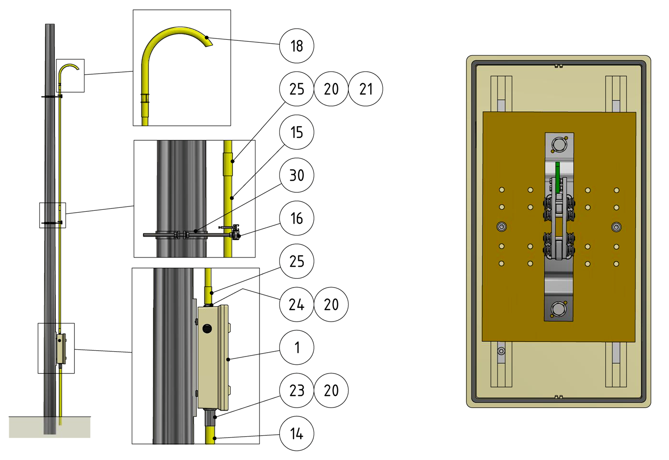 - Fixation sur mât rond- Collier pour mât rond, référence C1139-... (commander séparément)