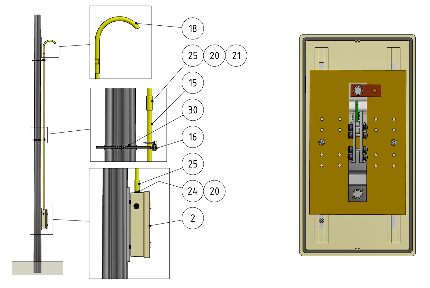 - Fixation sur mât rond- Collier pour mât rond, référence C1139-... (commander séparément)