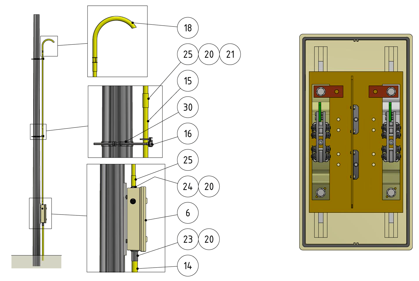 - Fixation sur mât rond- Collier pour mât rond, référence C1139-... (commander séparément)