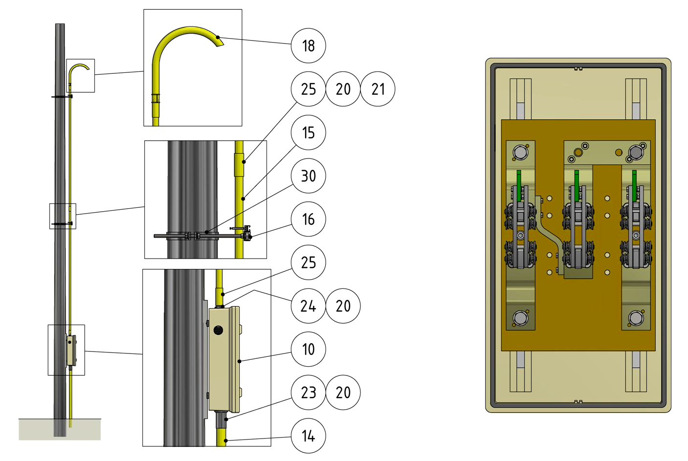- Fixation sur mât rond- Collier pour mât rond, référence C1139-... (commander séparément)
