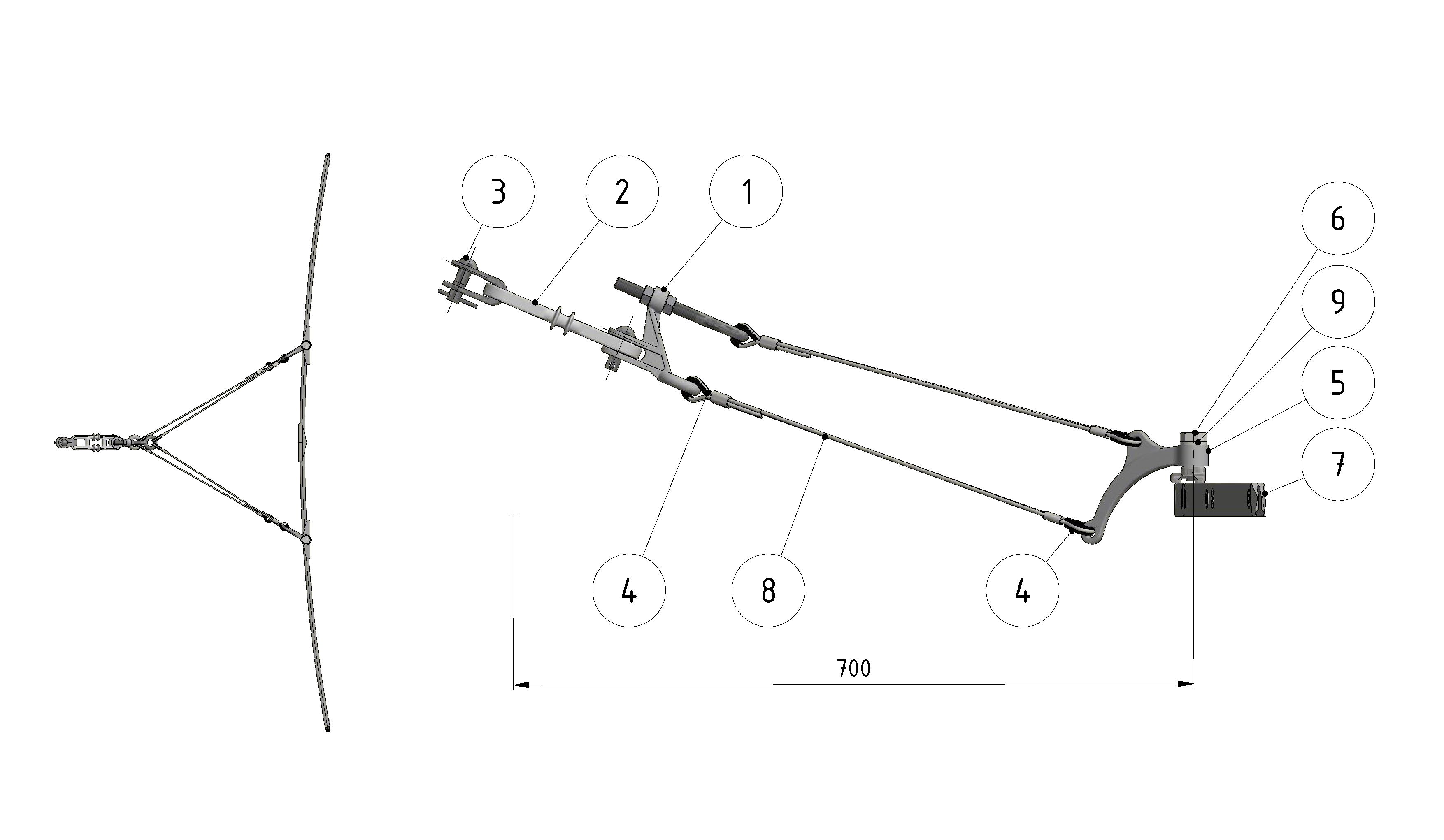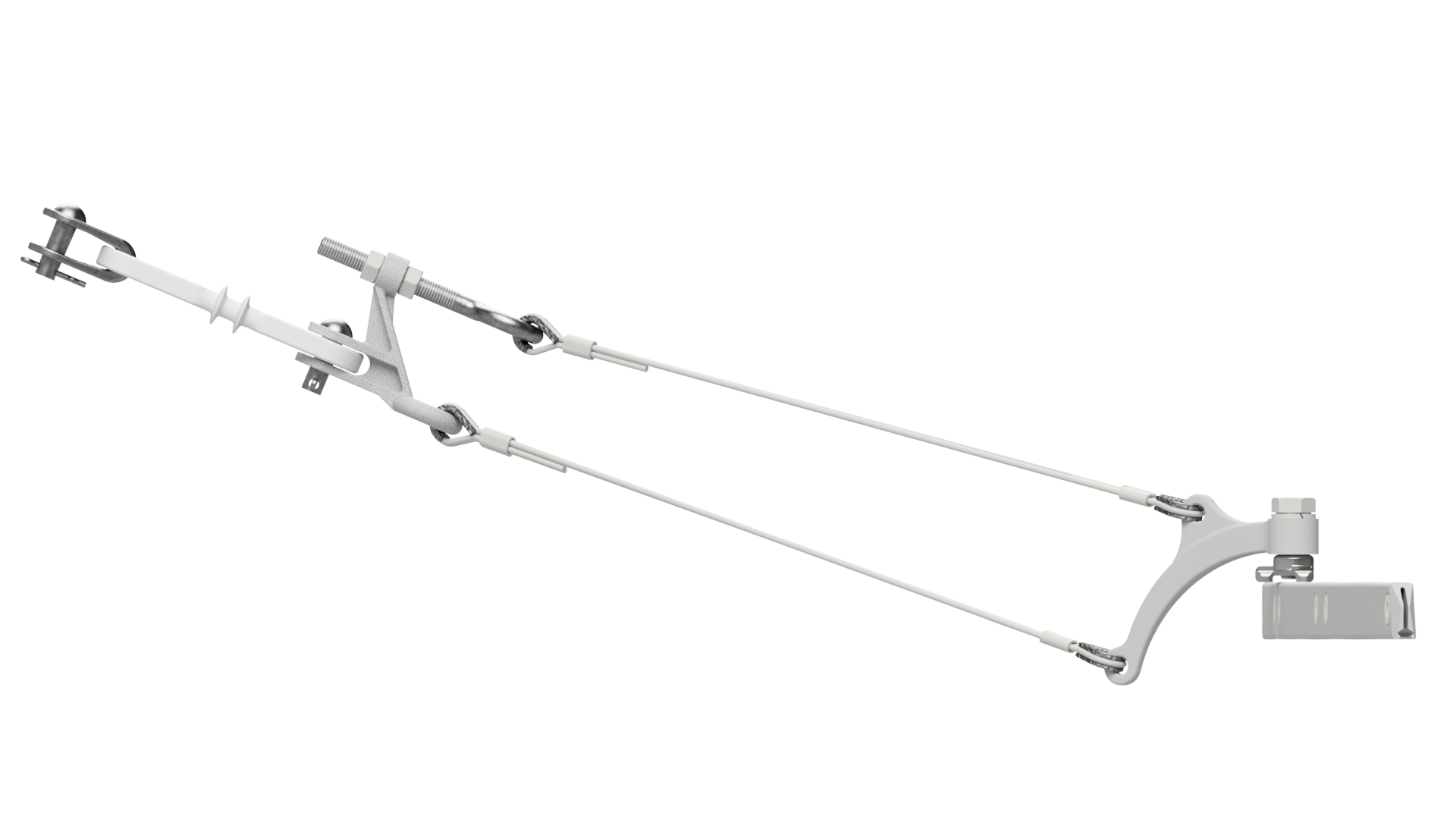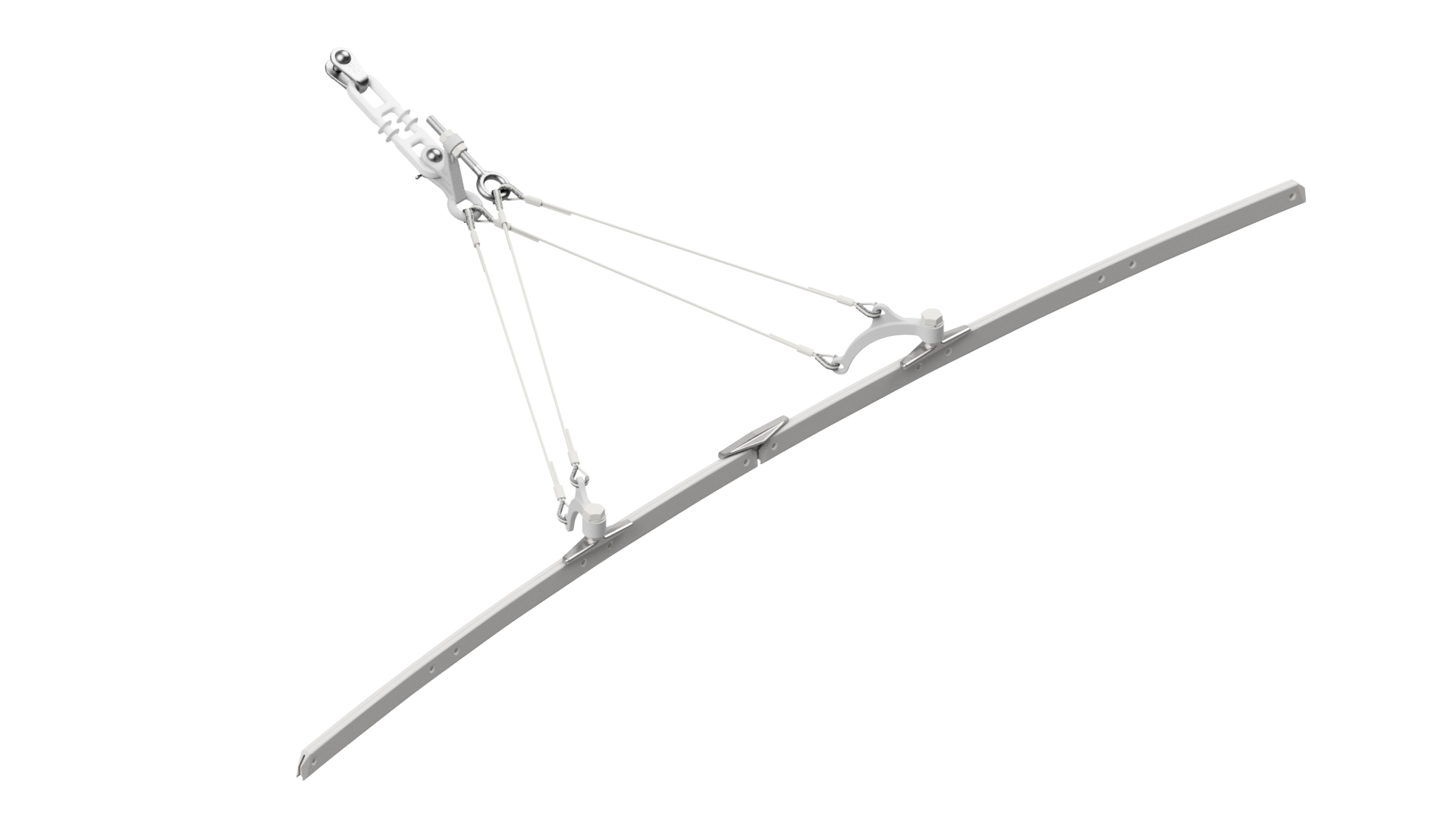 Suspension de ligne de contact TB avec boucle isolante, en courbes, sur retenue volante câble en acier/acier-cuivre 10.5-14° avec griffe de courbe type 3, M16