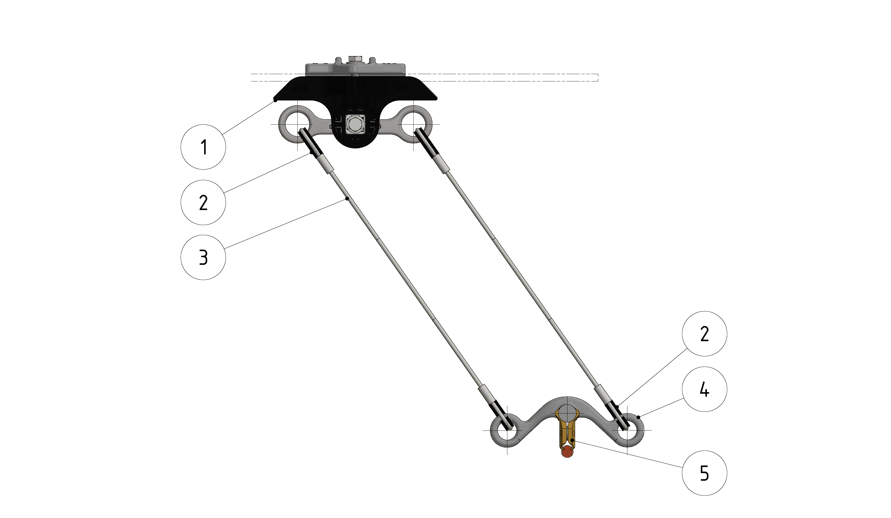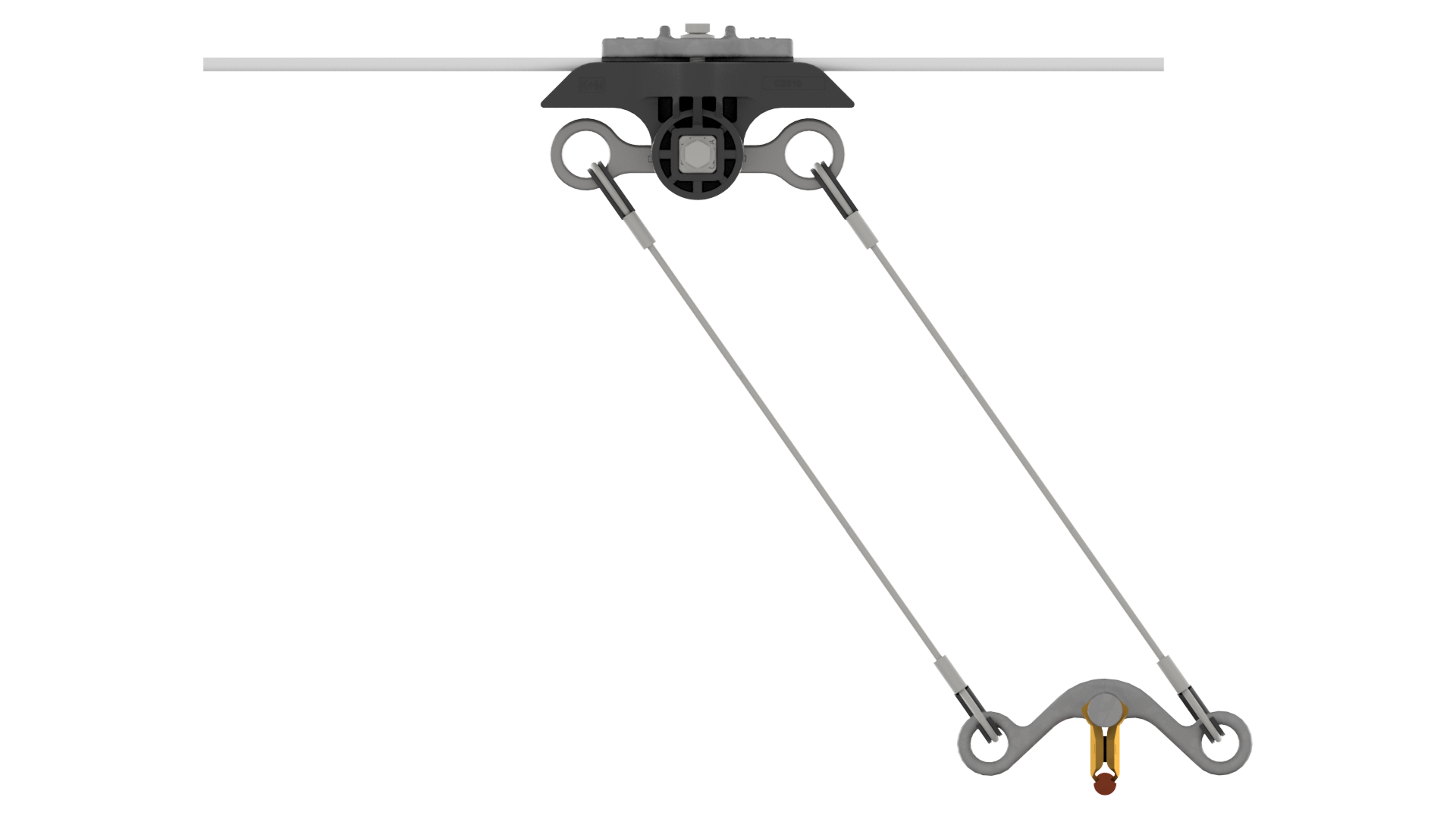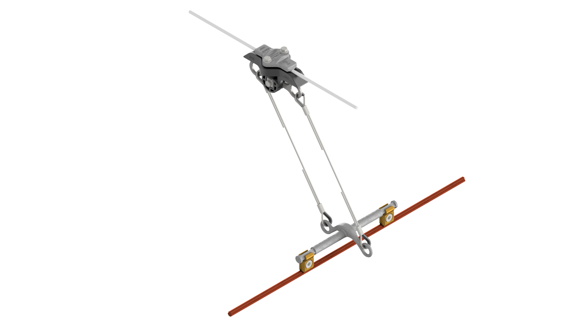 Suspension de ligne de contact TB avec corps isolé KUSYS, en alignement sur transversal câble en acier/acier-cuivre 0-2.5° pendule