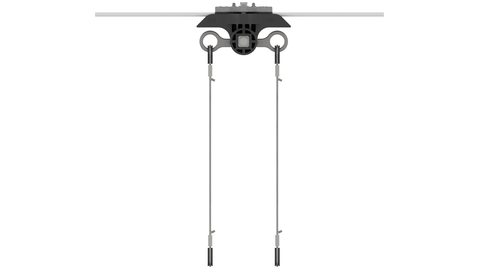Die Aufhängungshöhe zwischen KUSYS und Streckentrenner ist individuell und variabel. Diese wird vor Ort durch die Anpassung der Hängedrahtlänge bestimmt.