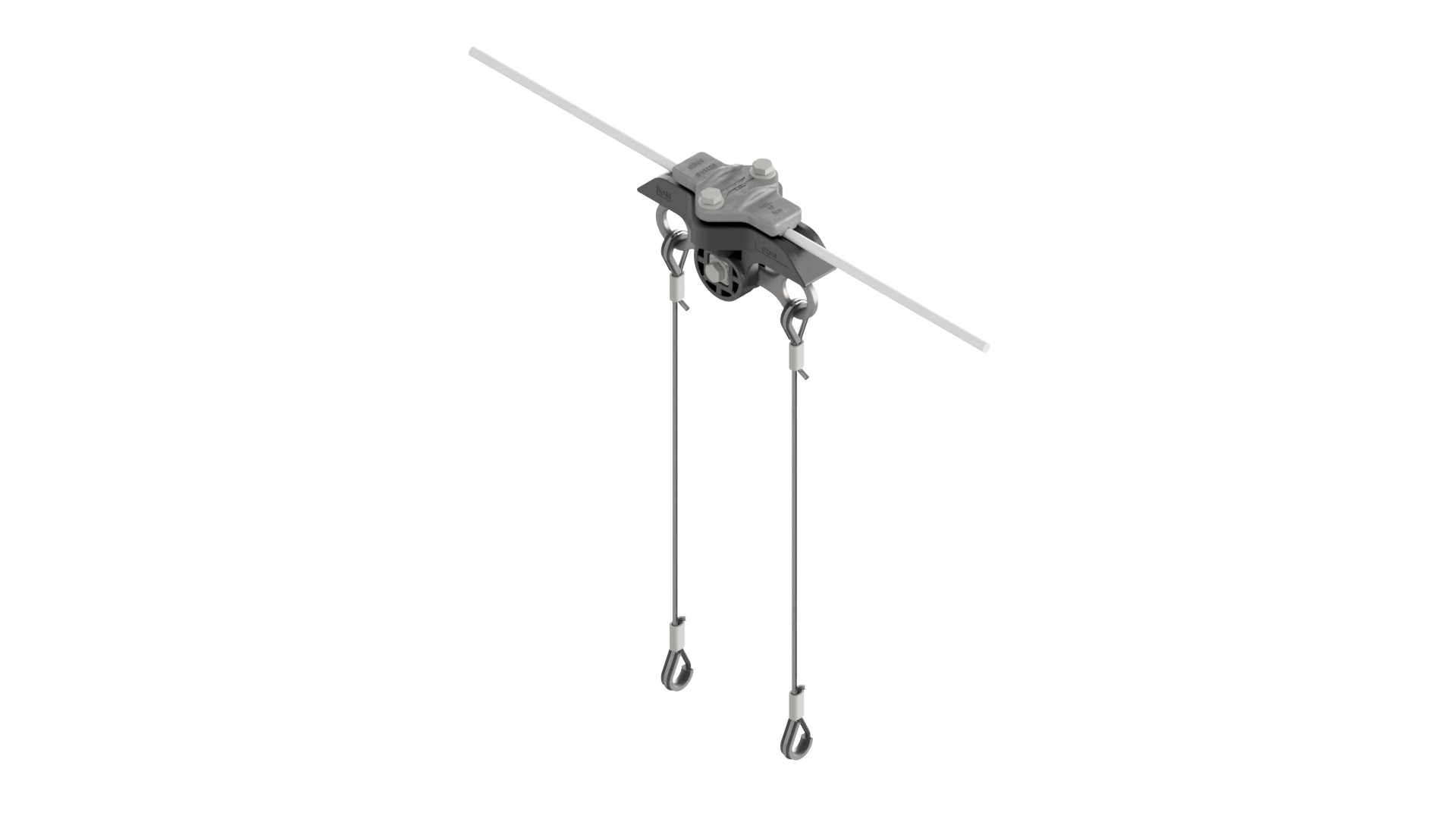 Suspension isolateur de section sur transversal double acier/acier-cuivre 26-50 mm² avec KUSYS isolateur et fil de suspension en Inox
