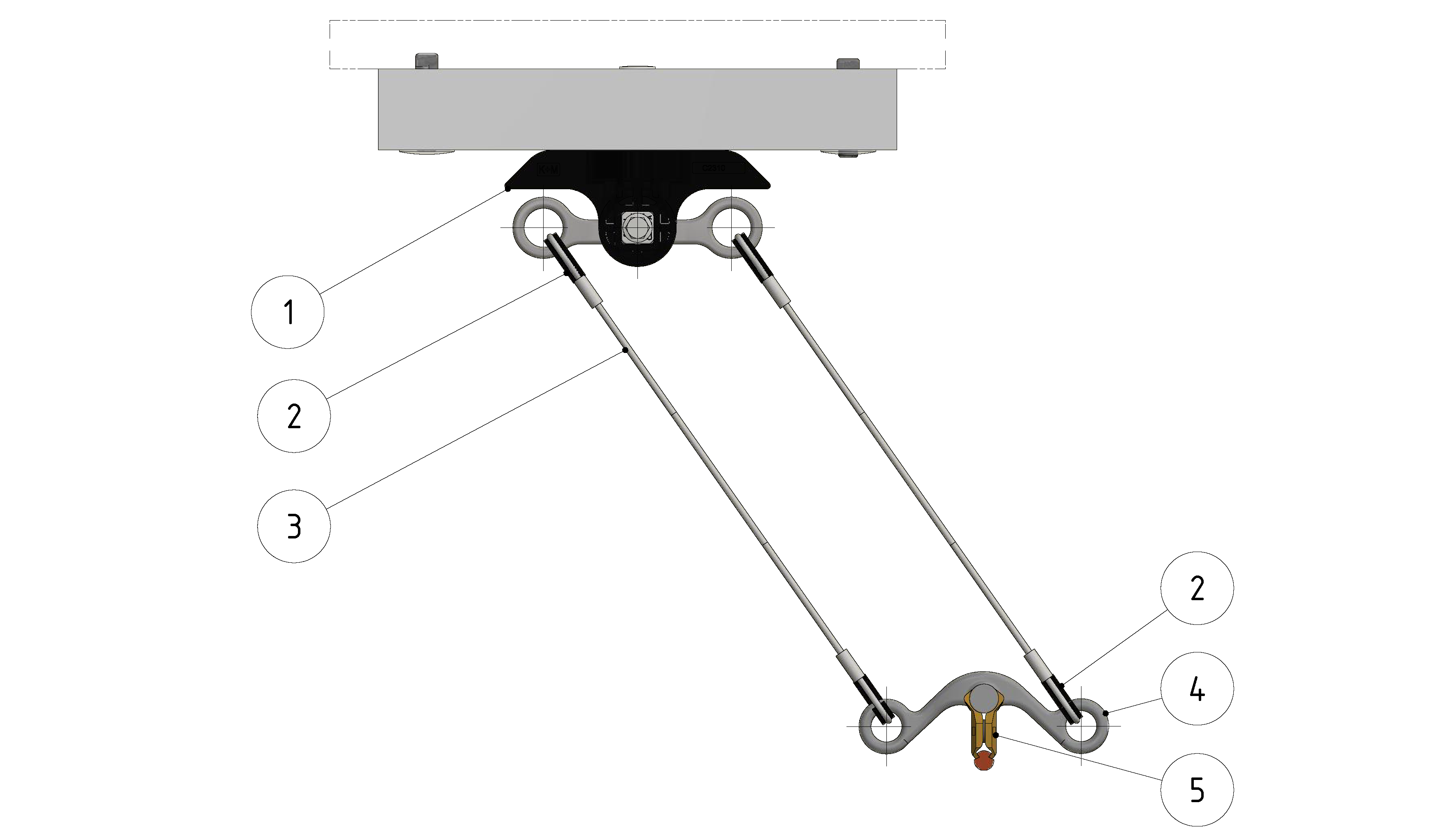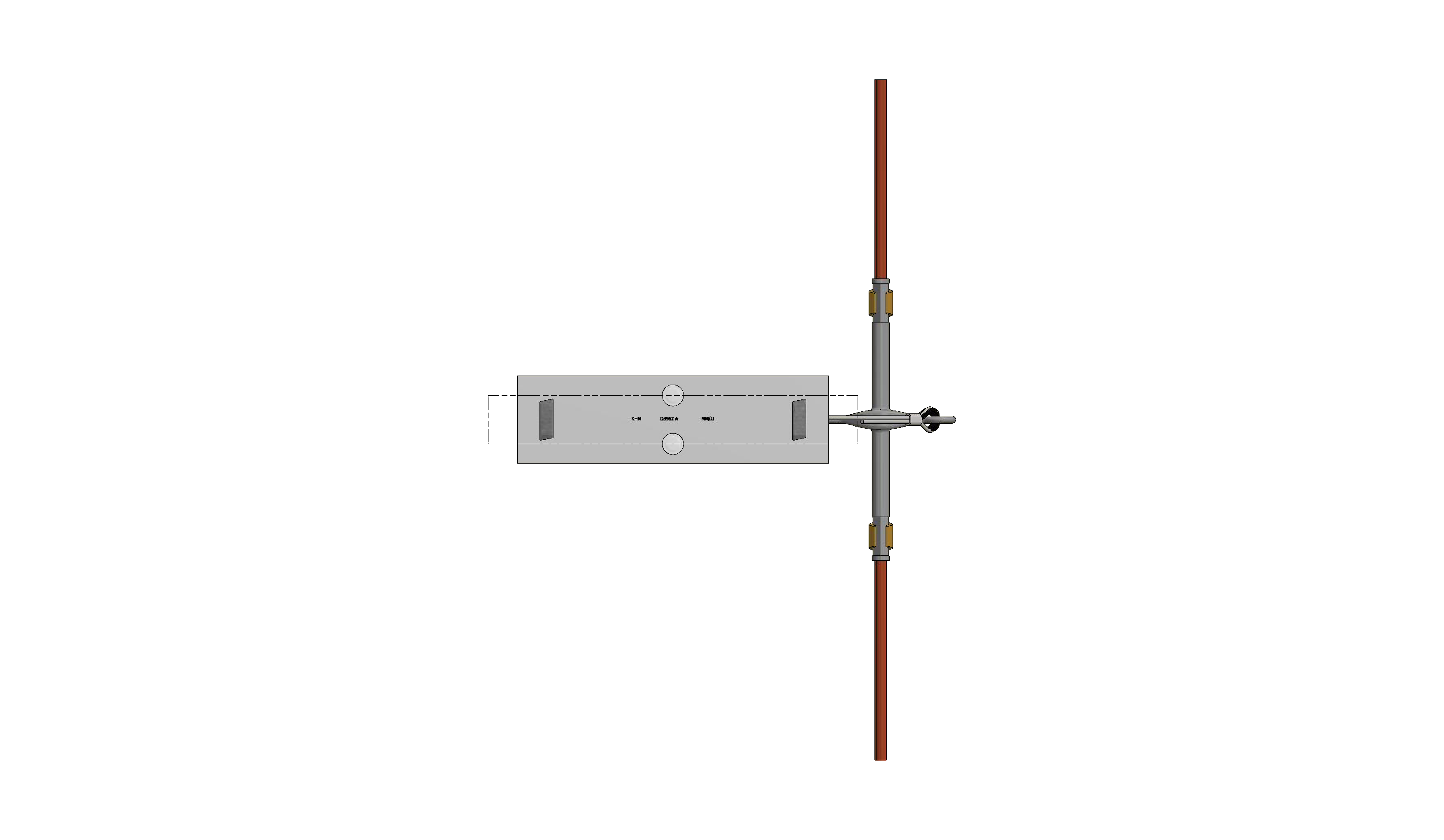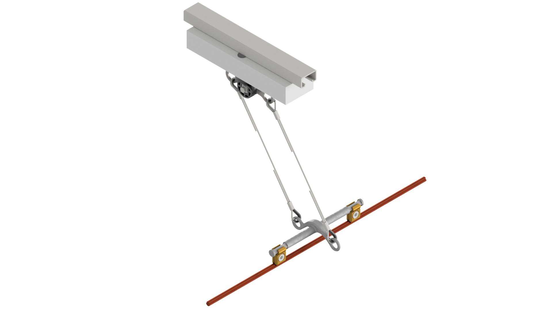 Suspension de ligne de contact TB avec corps isolé type 1, en alignement sur rail d'ancrage type 3 b 0-2.5° pendule