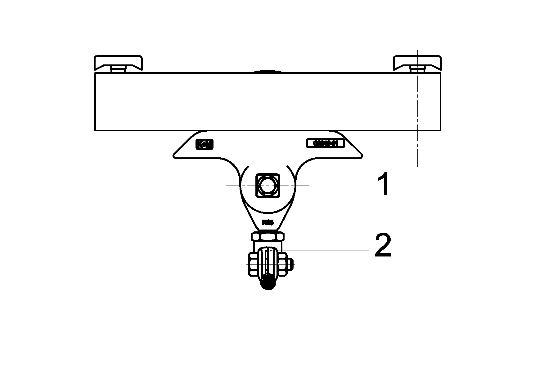 Suspension de ligne de contact TRW avec corps isolé type 1, en alignement sur rail d'ancrage type 3B 0-4° avec griffe de fil de contact M16