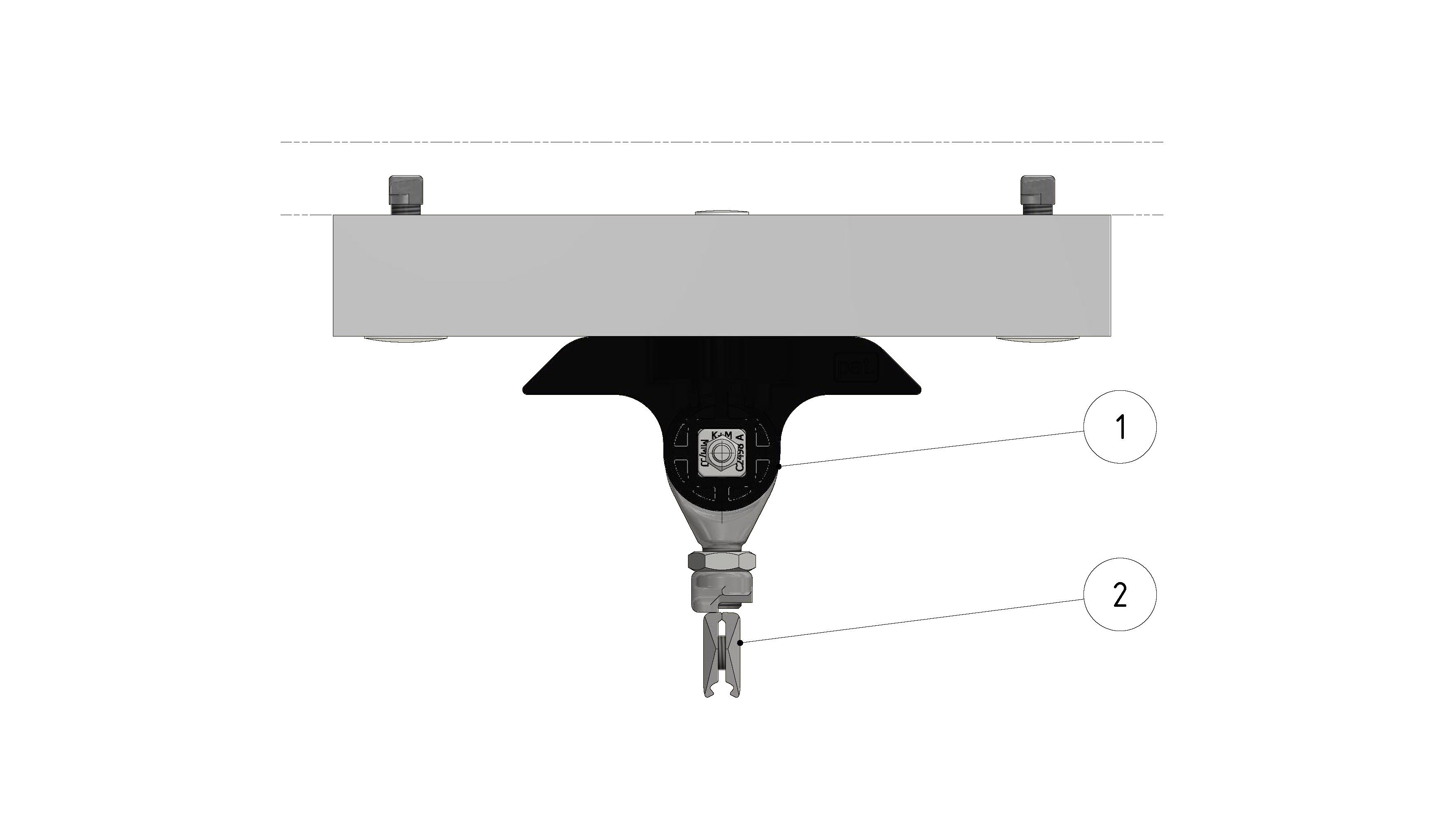 Suspension de ligne de contact TB avec corps isolé KUSYS, sur rail d'ancrage type 3 B, rigide 1-2.5° avec griffe de fil de contact court M16