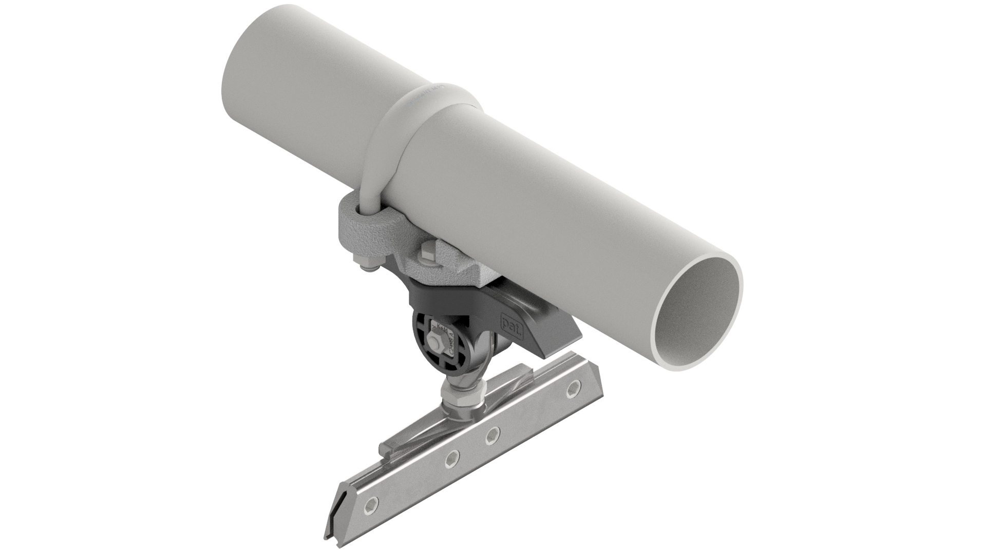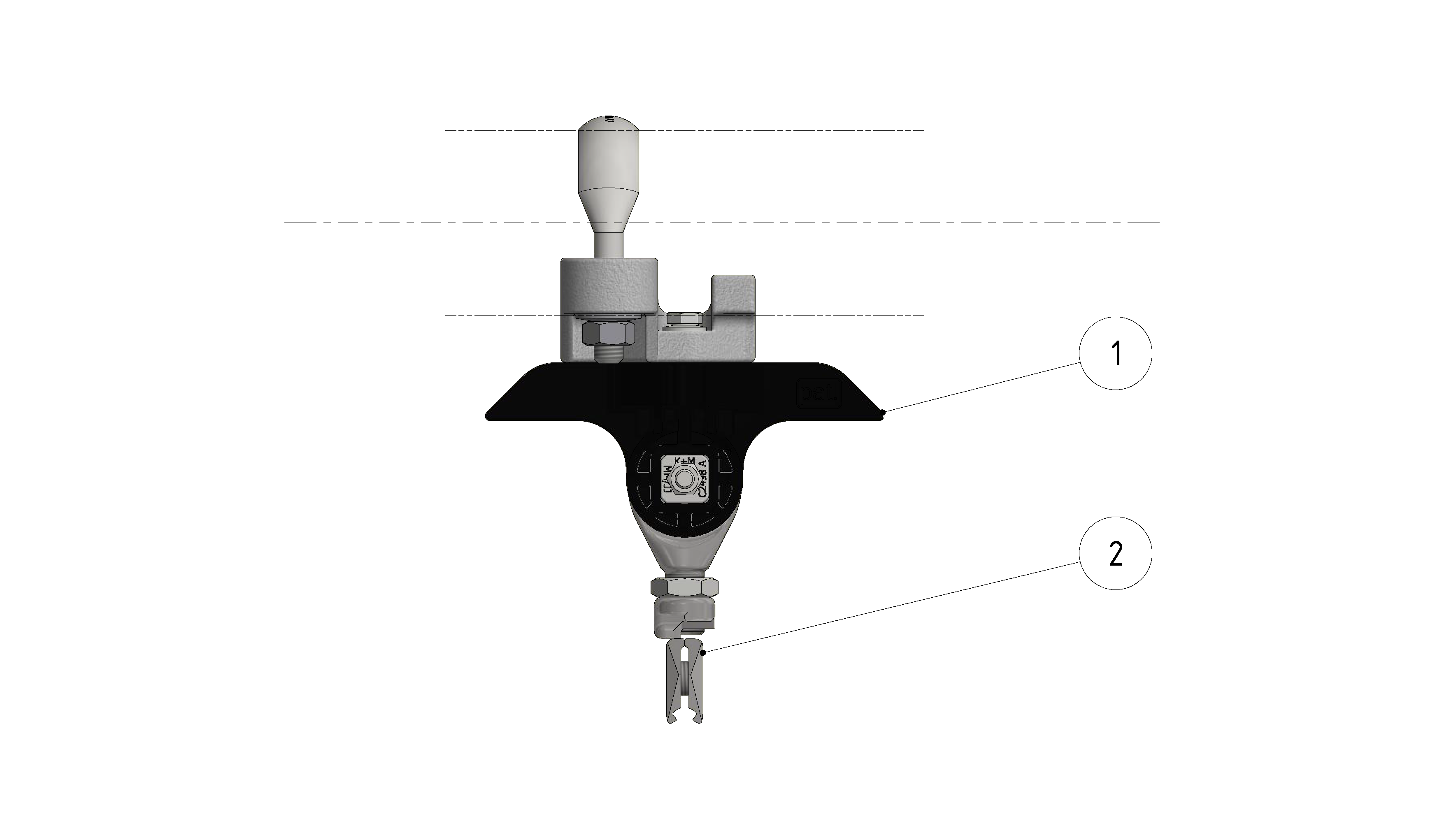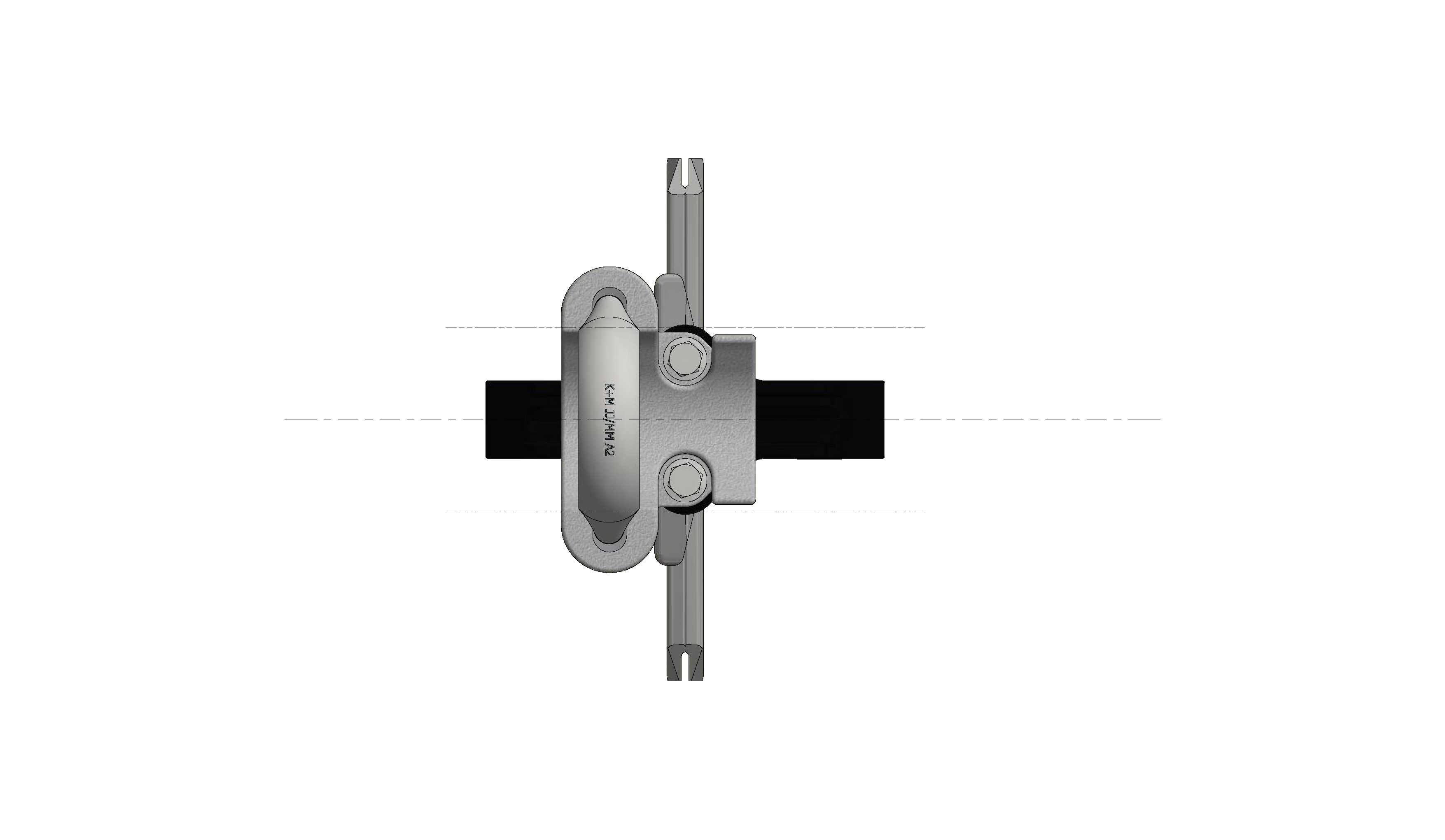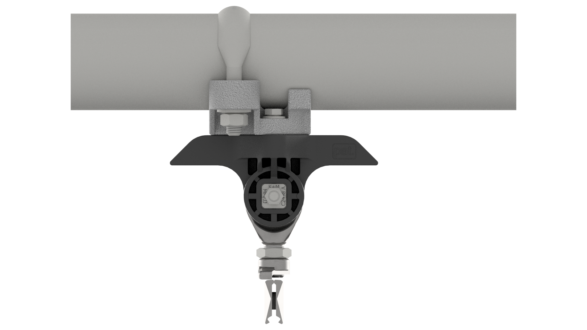 Suspension de ligne de contact TB avec corps isolé KUSYS, sur tube G2.5", rigide 1-2.5° avec griffe de fil de contact court M16