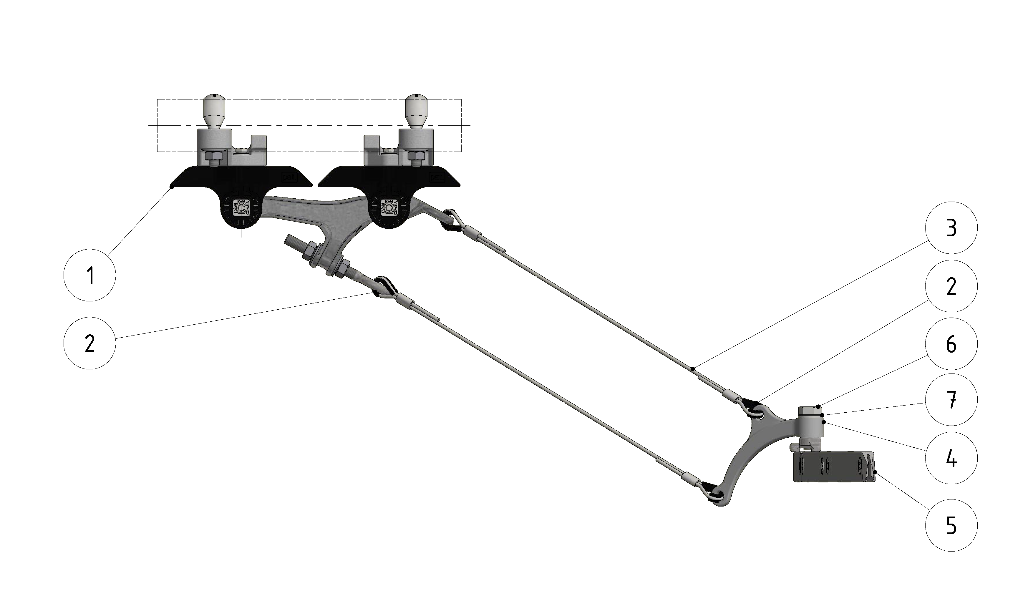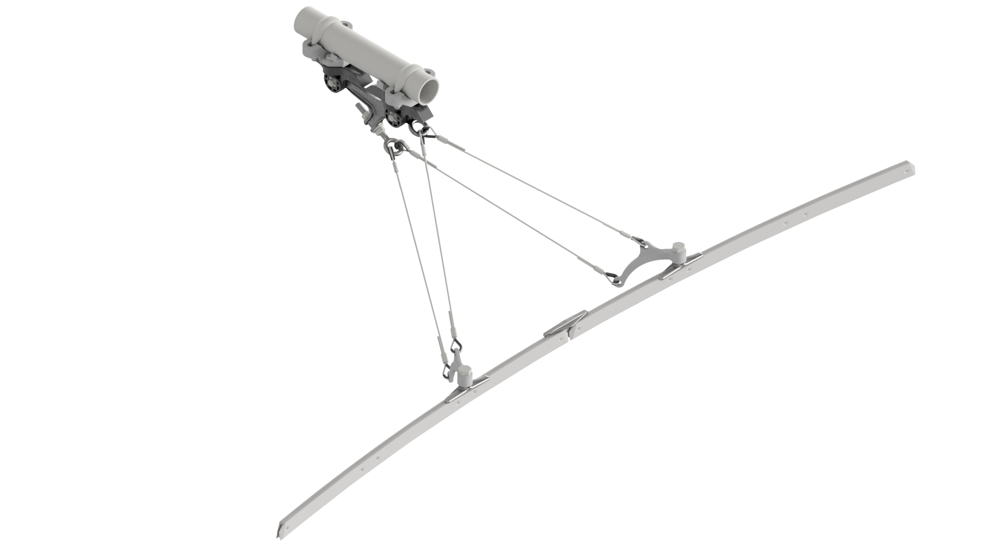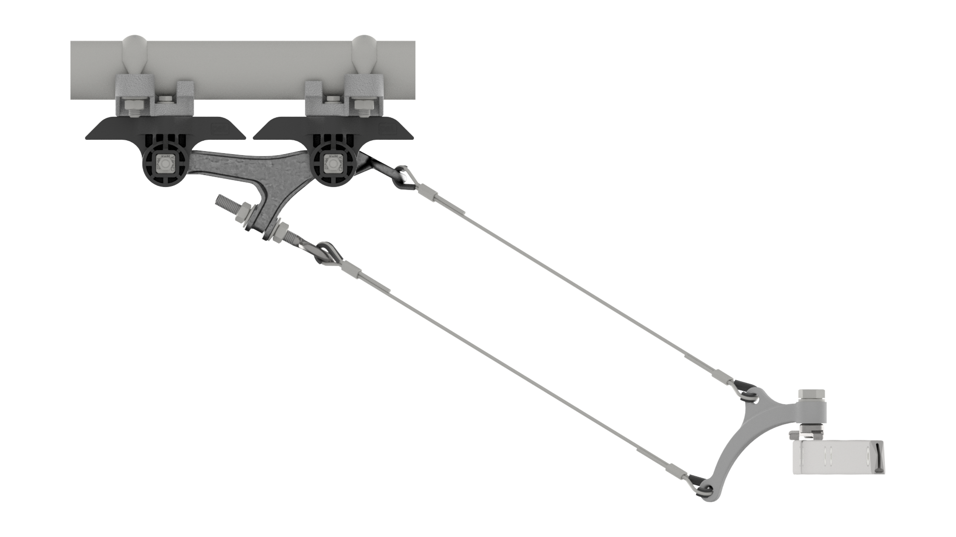 Suspension de ligne de contact TB avec corps isolé type 2, en courbes sur tube G2" 10.5-14° avec griffe de courbe type 3, M16