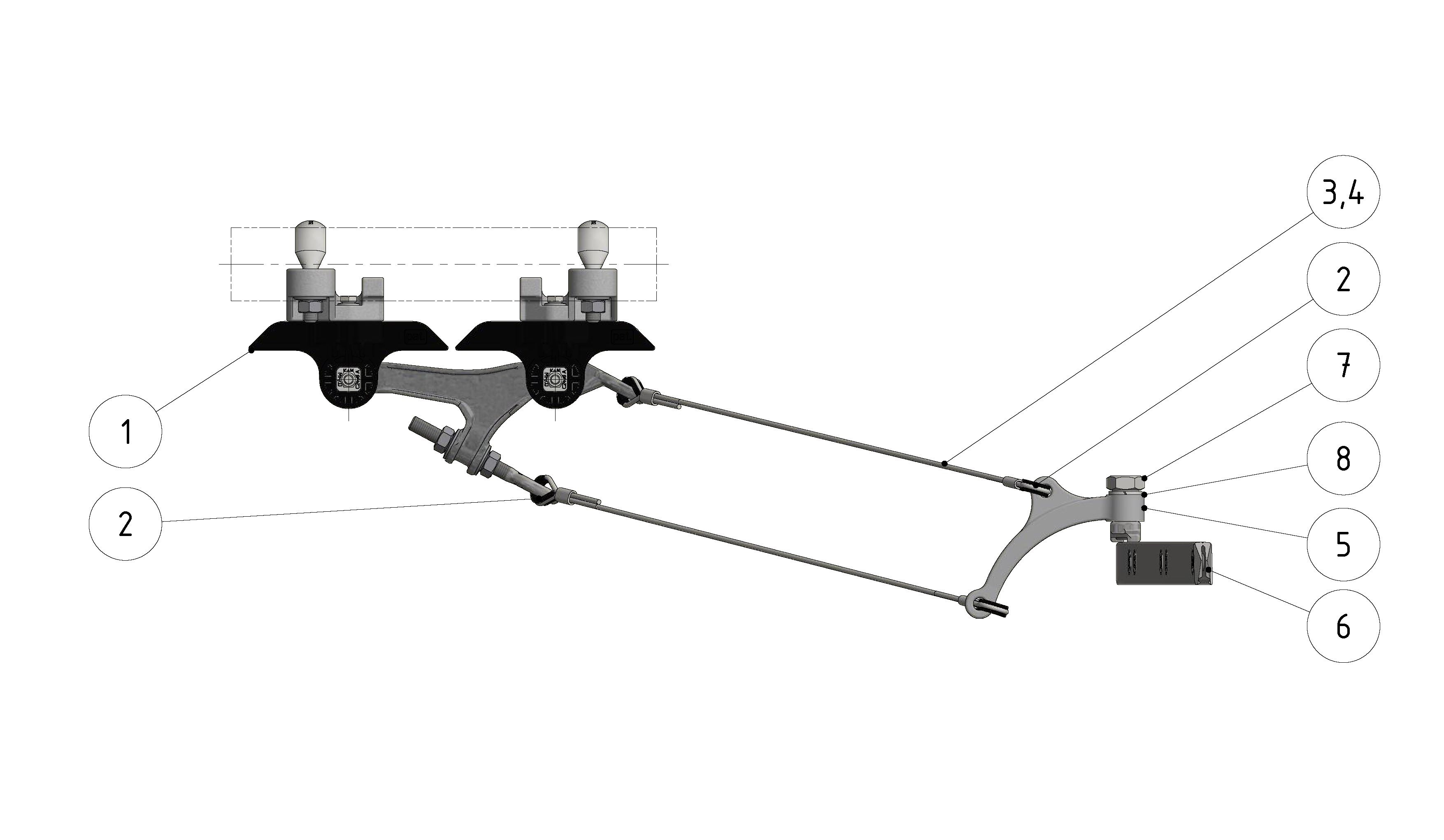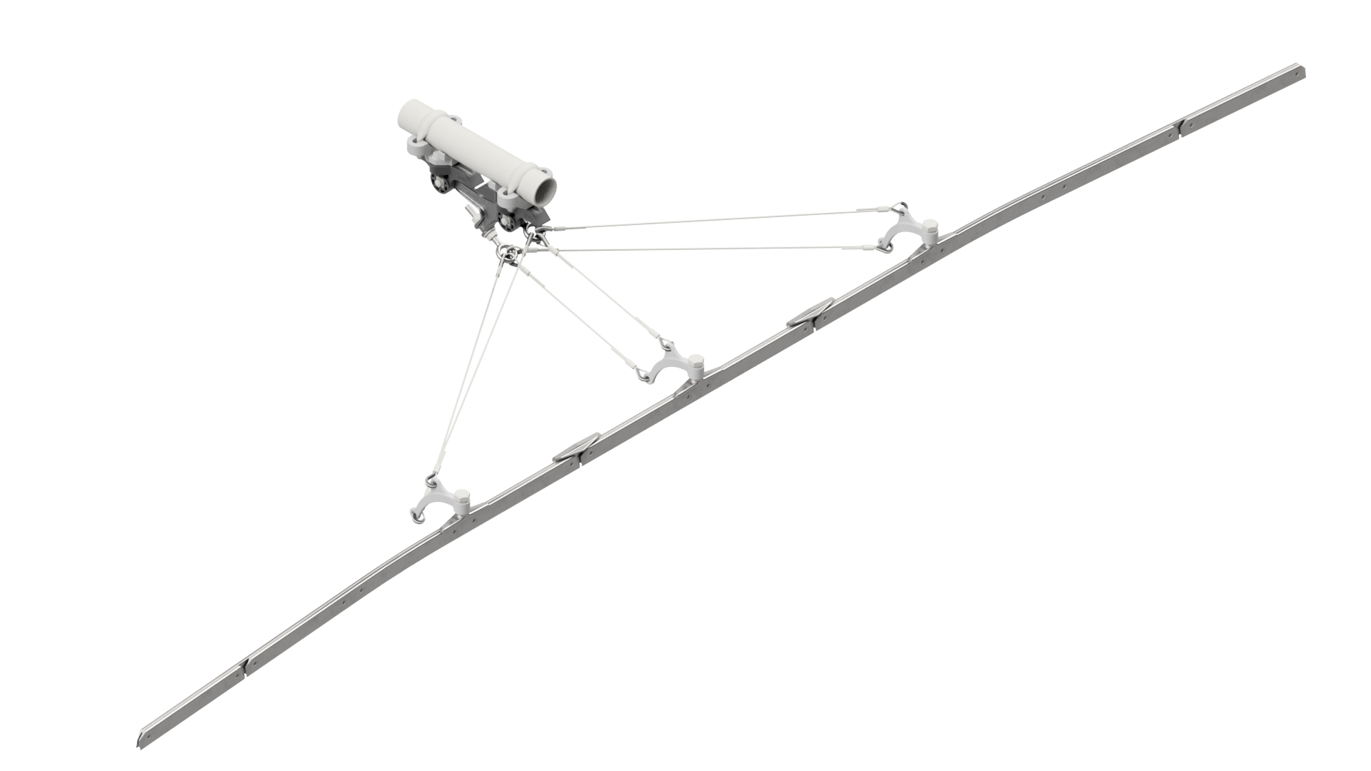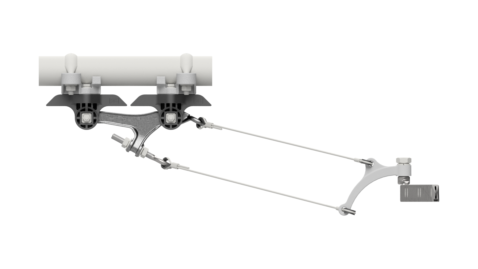 Suspension de ligne de contact TB avec corps isolé KUSYS2, en courbes sur tube G2" 14.5-30° avec griffe de courbe type 4, M16