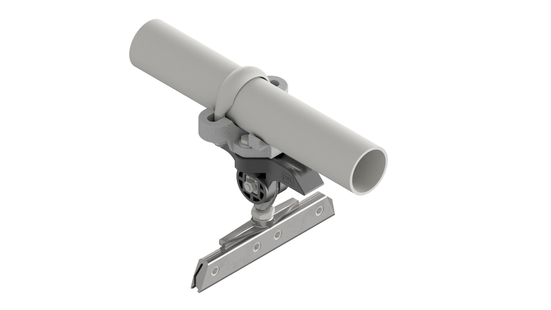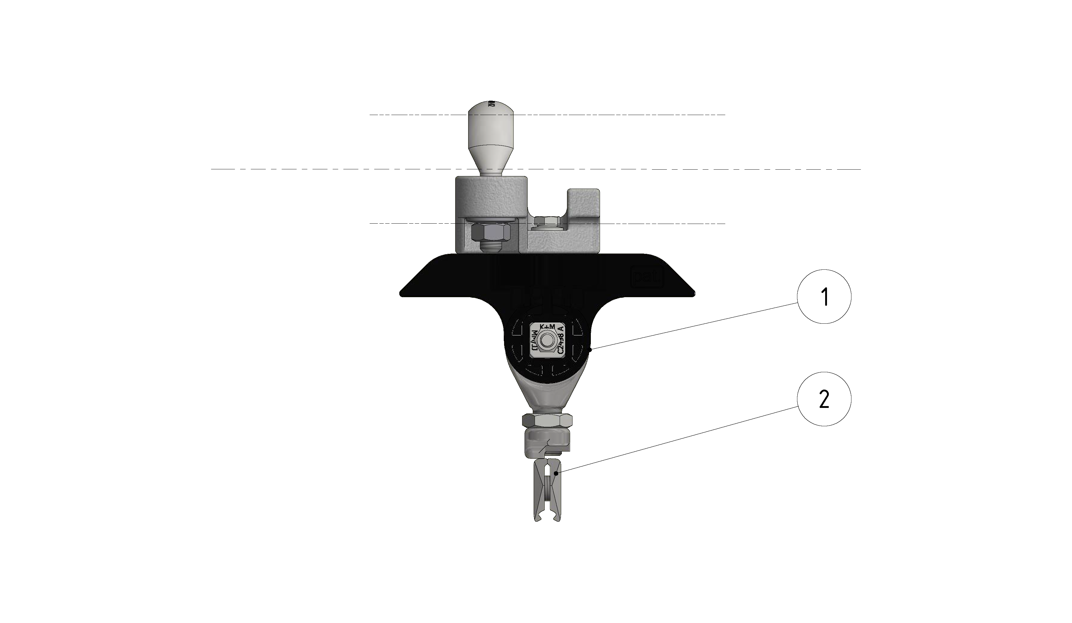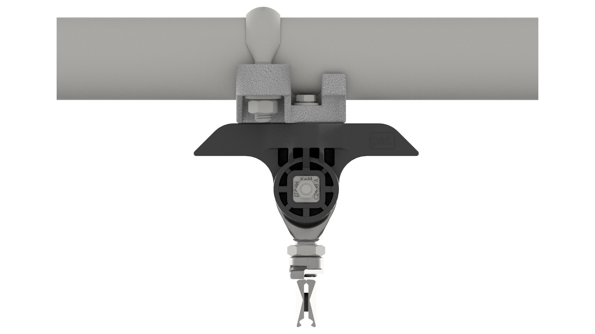 Suspension de ligne de contact TB avec corps isolé KUSYS, sur tube G2", rigide 1-2.5° avec griffe de fil de contact court M16