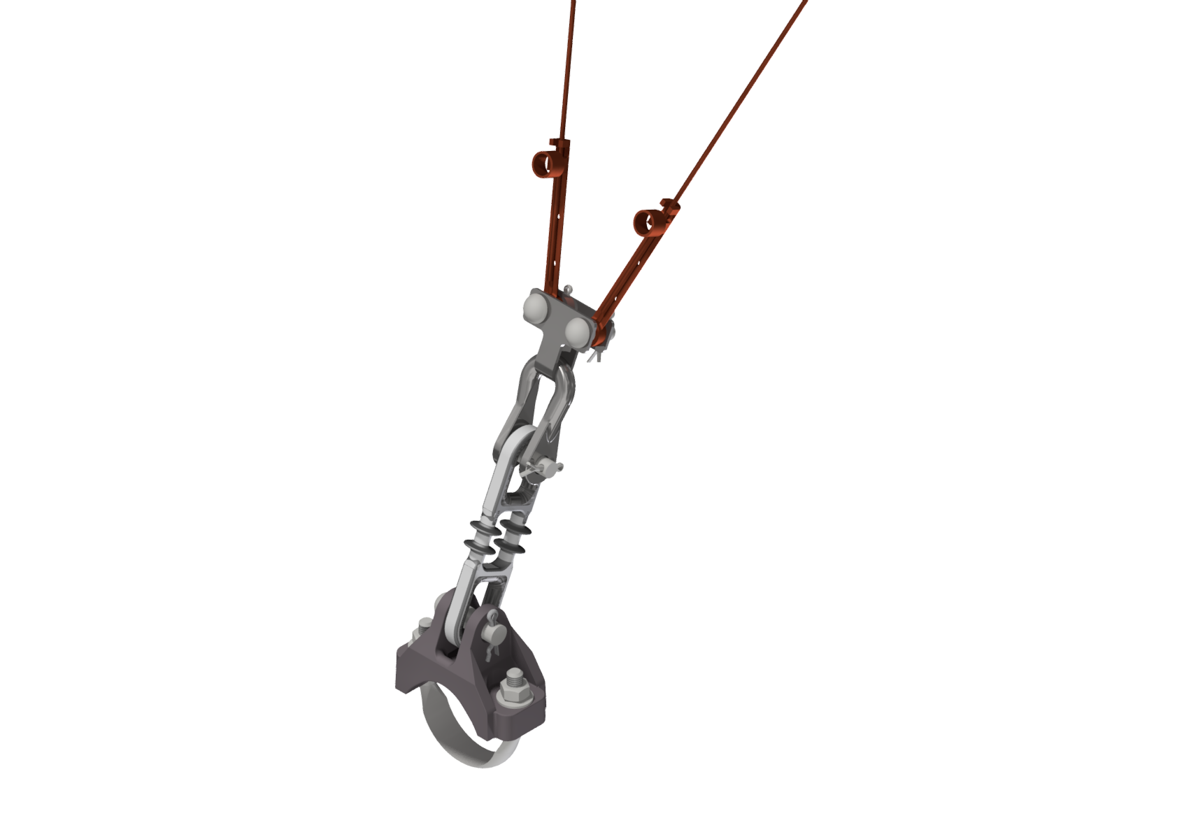 Suspension tube porteur G1.5", forme V, avec pendule à câble réglable, équipotentiel, avec boucle isolante