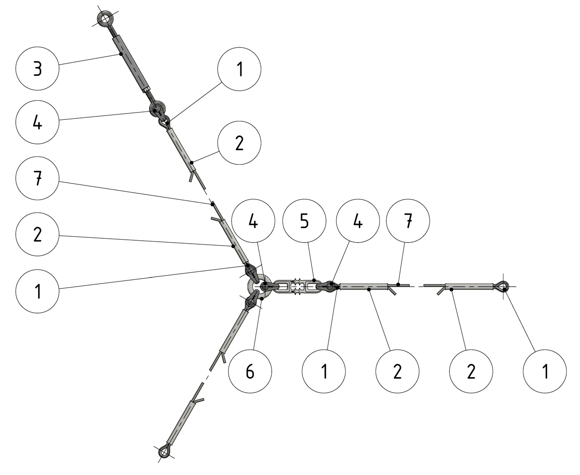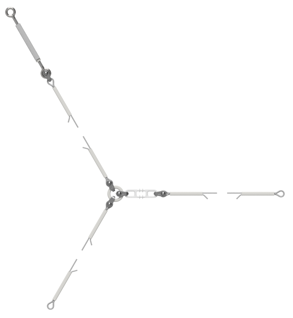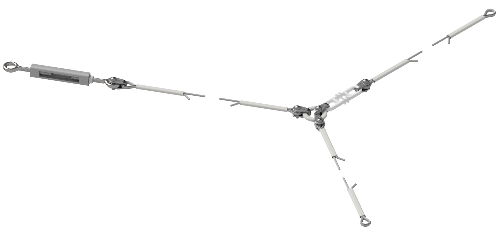 Retenue volante forme Y, câble en acier 35 mm² galv., avec boucle isolante, avec tendeur