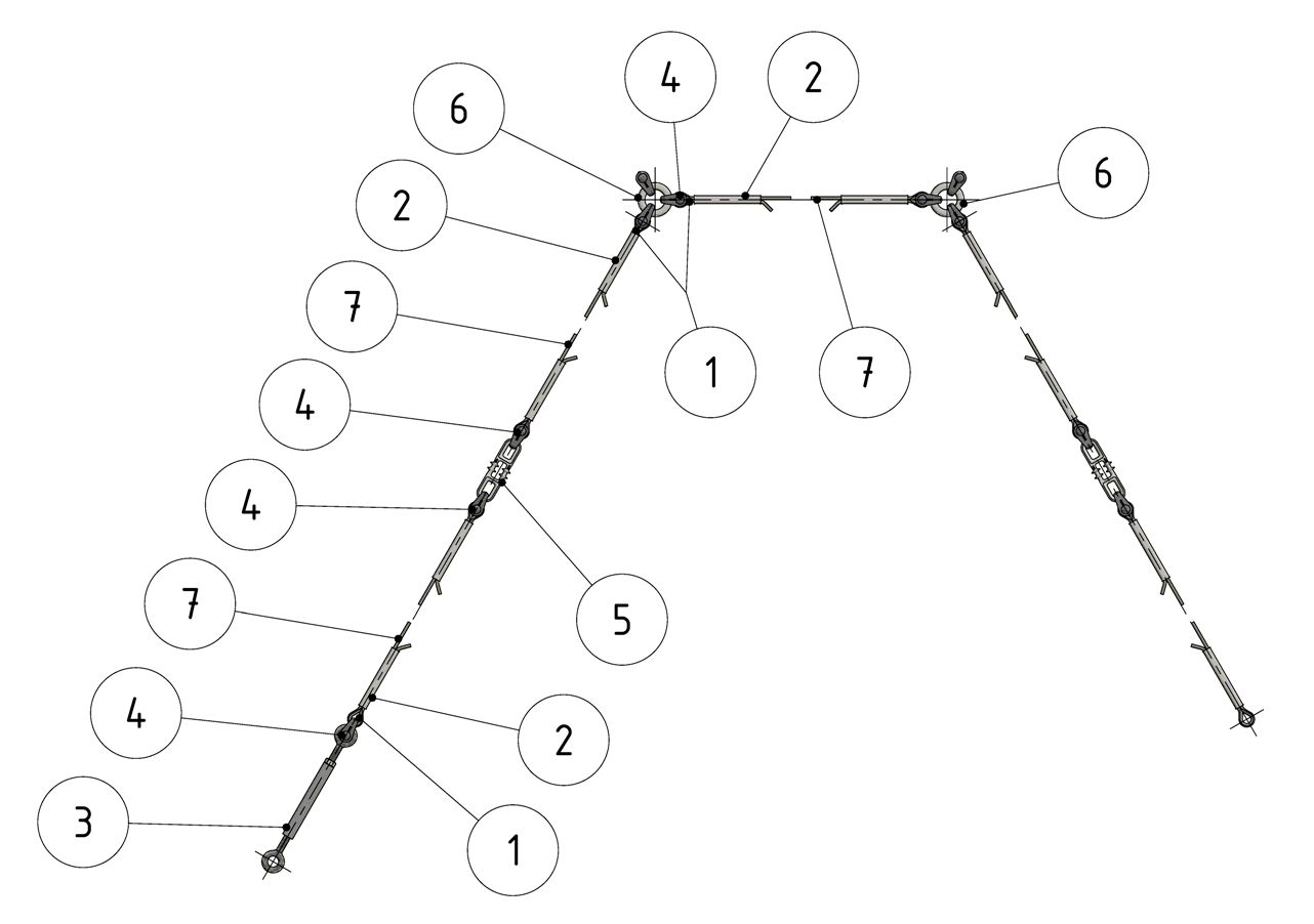 Chaîne de suspension pour 2 retenues, câble en acier 35 mm² galv., avec boucle isolante