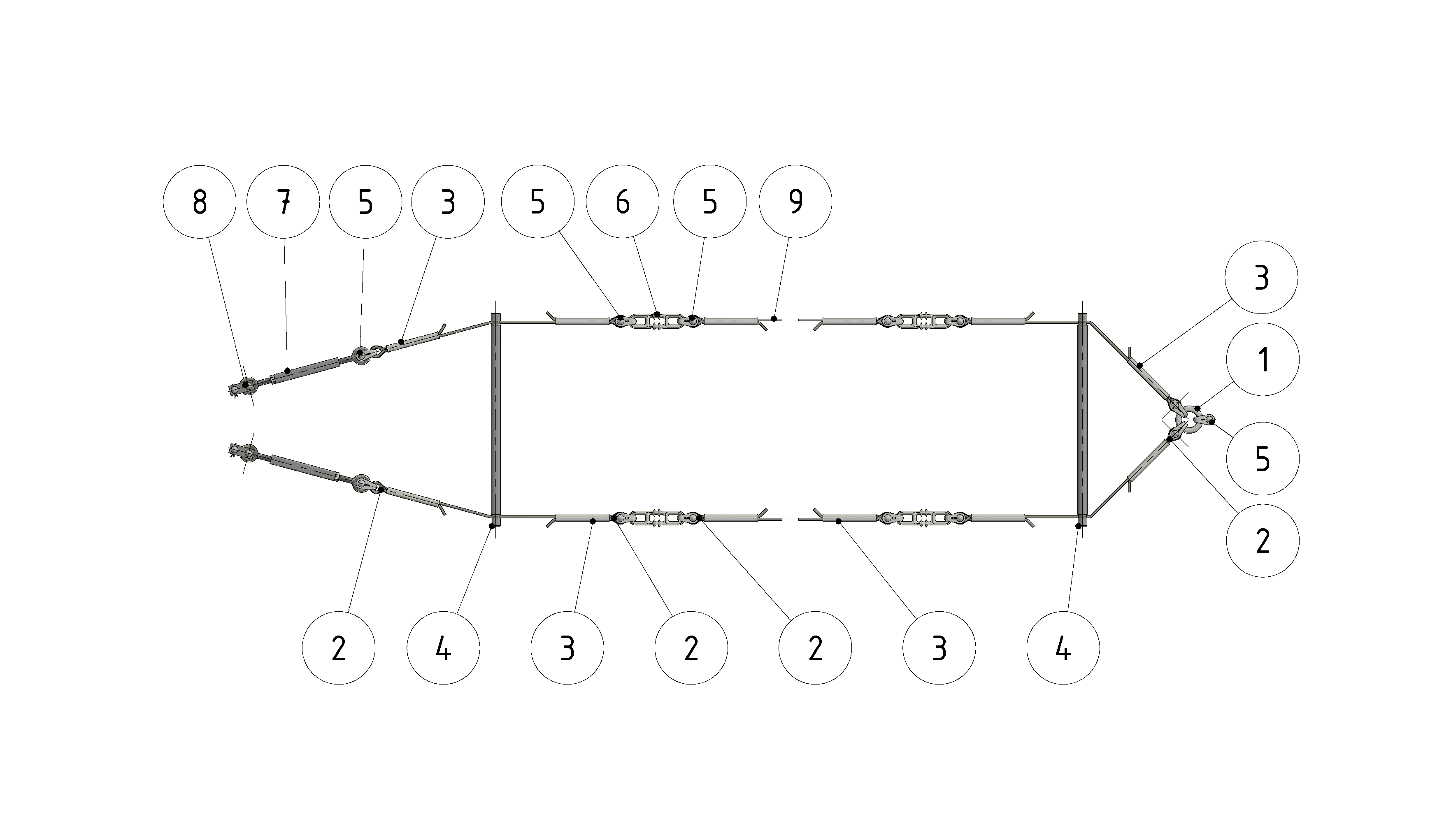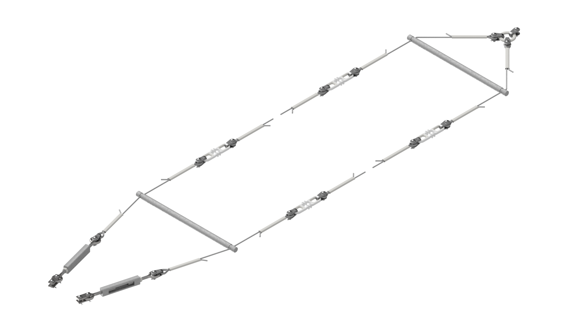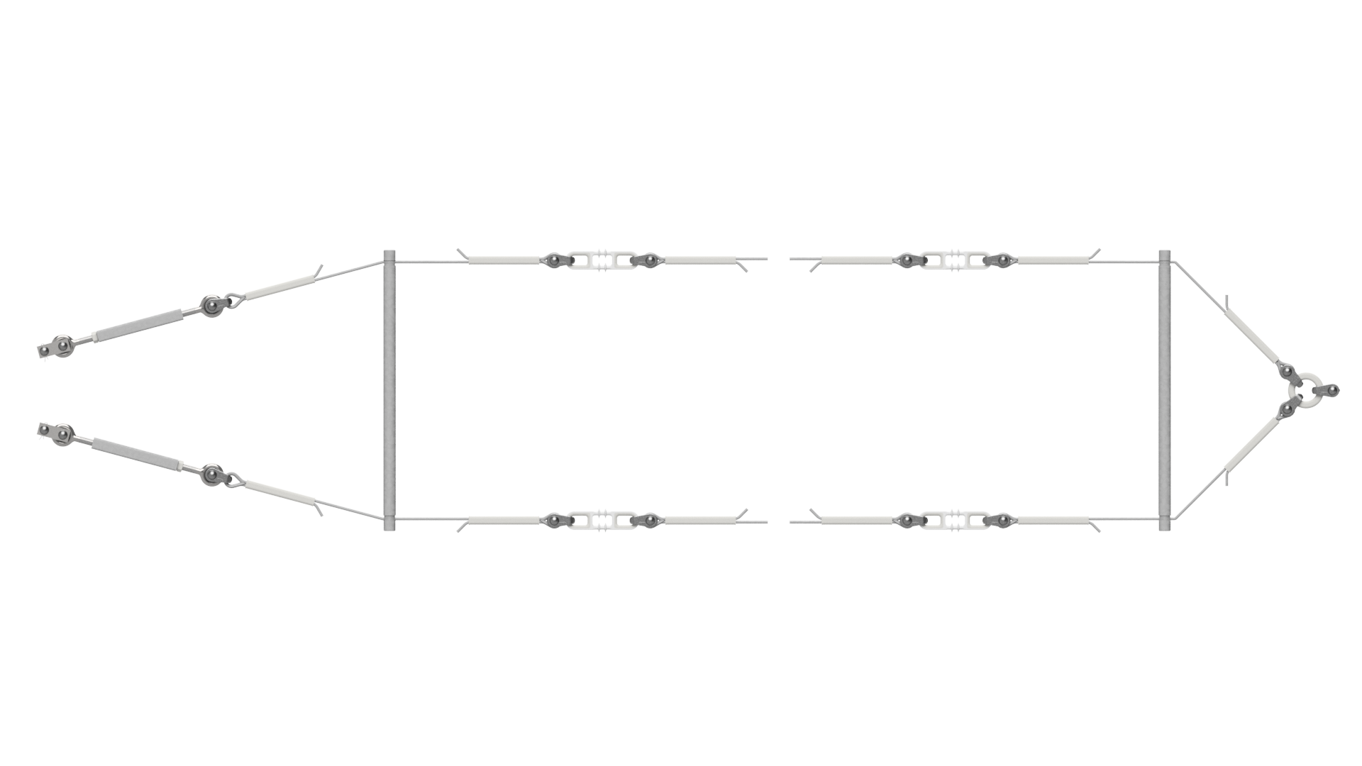 Transversal double pour suspension isolateur de section, avec alimentation, câble en acier 35 mm² galv., avec anneau d'ancrage, avec boucle isolante et tube d'écartement isolé