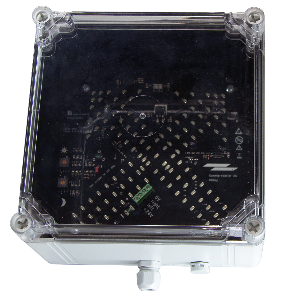 Afficheur de flèche à moitié gauche et à moitié droite, spécialement pour les commandes d'aiguillage compactesSpécification
