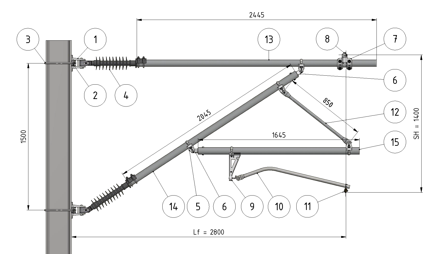 Type de mât : HEA260 ou HEB260Isolateur ligne de fuite = 1230±3 mm