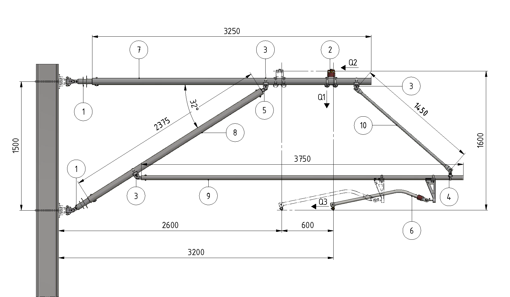 ARCAS Ausleger, vollnachgespannt (VN), DRUCK, Lf= 2.60-3.20m