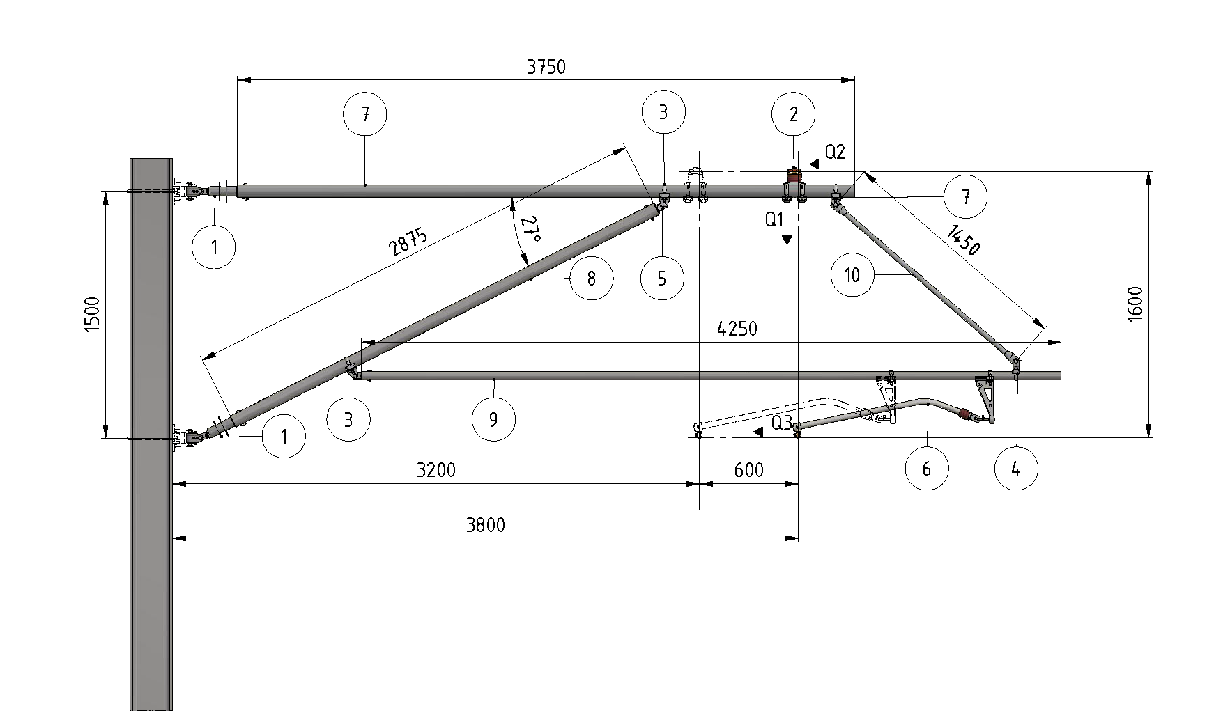 ARCAS Ausleger, vollnachgespannt (VN), DRUCK, Lf= 3.20-3.80m