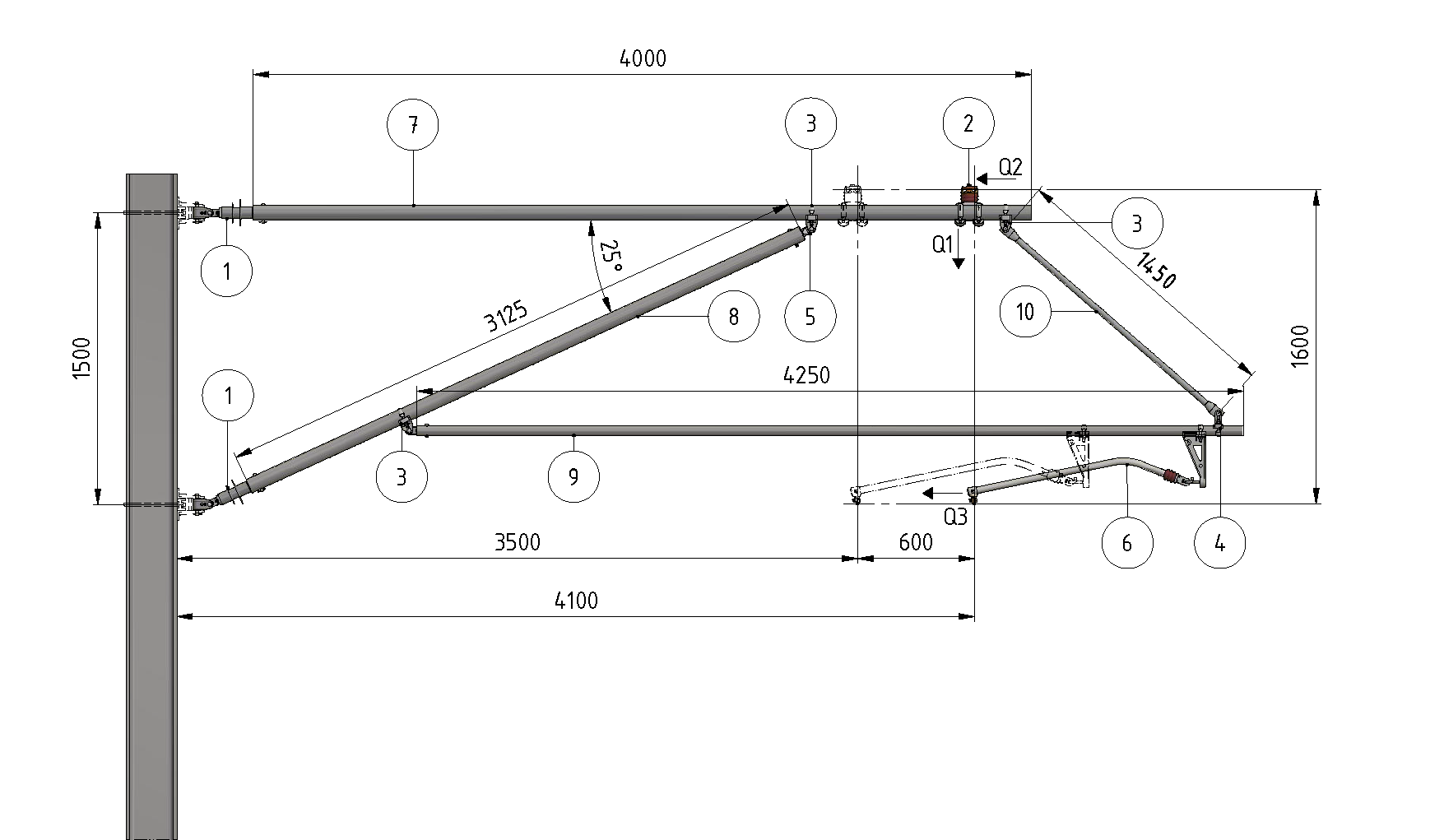 ARCAS Ausleger, vollnachgespannt (VN), DRUCK, Lf= 3.50-4.10m