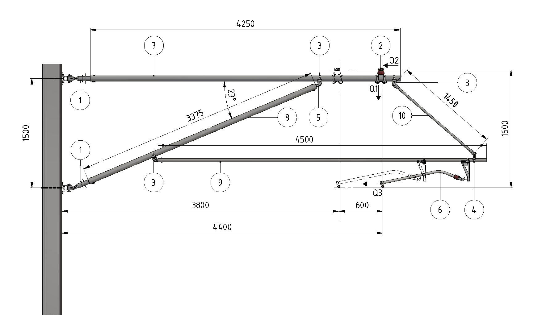 ARCAS Ausleger, vollnachgespannt (VN), DRUCK, Lf= 3.80-4.40m