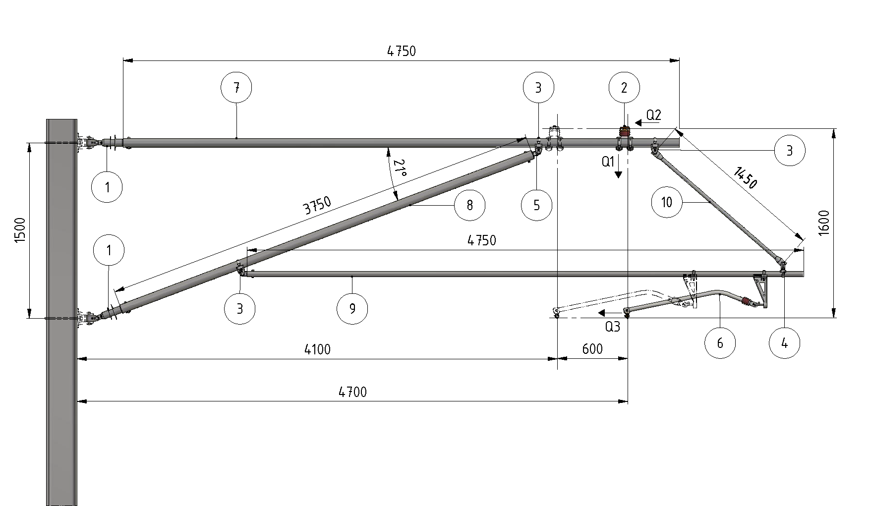 ARCAS Ausleger, vollnachgespannt (VN), DRUCK, Lf= 4.10-4.70m