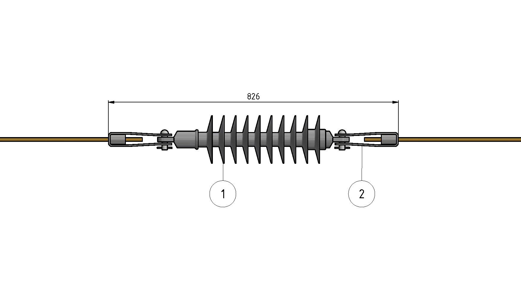 Isolateur ligne de fuite = 1241 mmCâble porteur = bronze 70 mm²