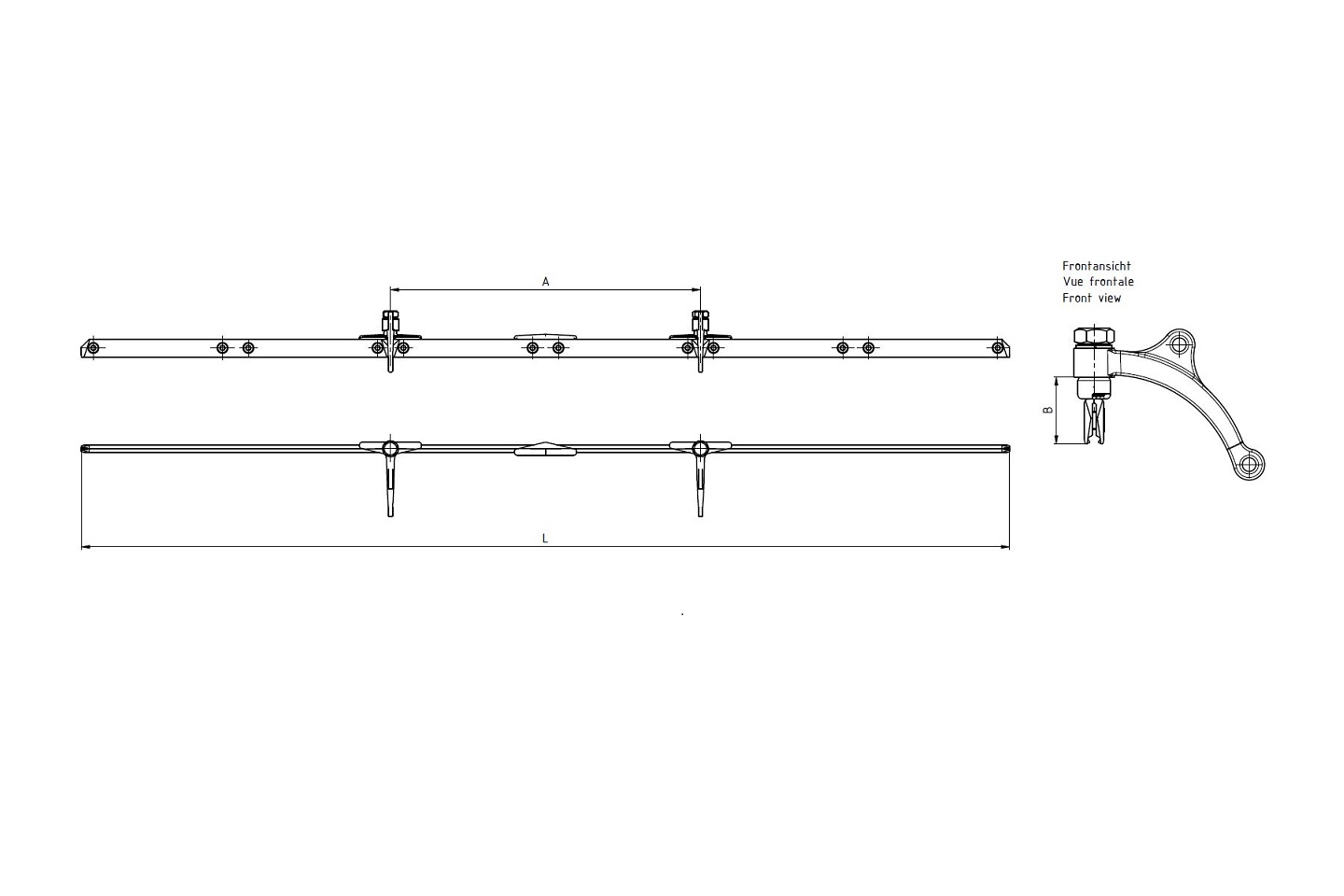 Pince de courbe type 2, pour angle de déviation du fil de contact 8°–10°, avec filetage 5/8", pour fil de contact rainuré 80 mm²